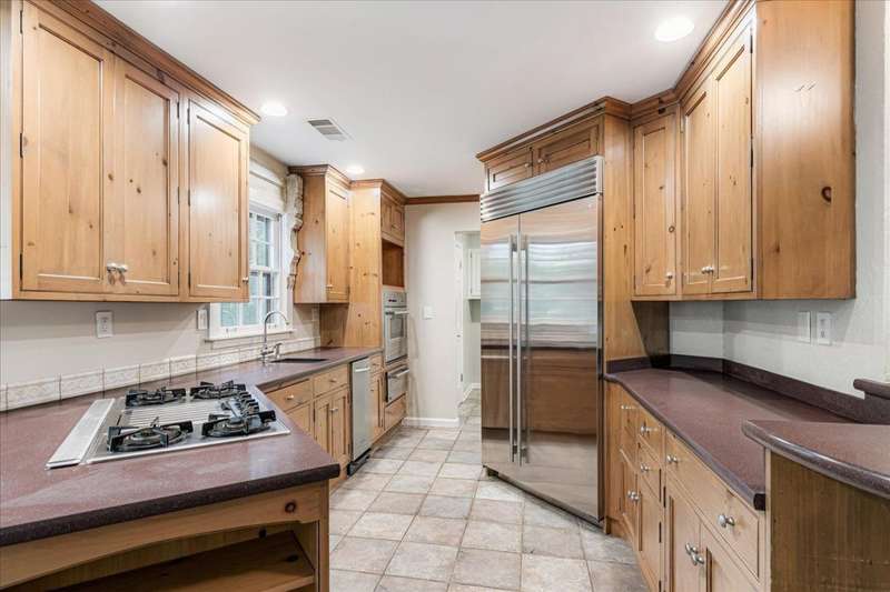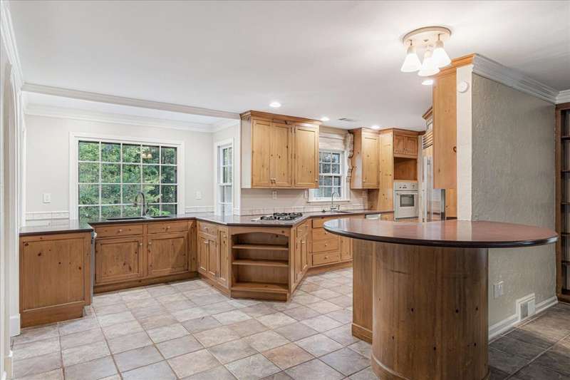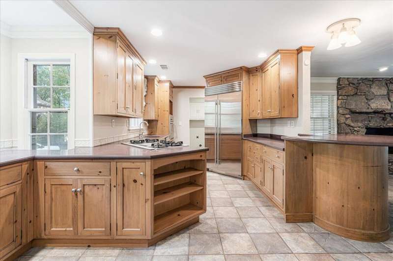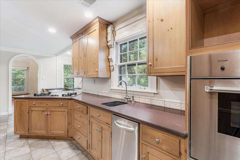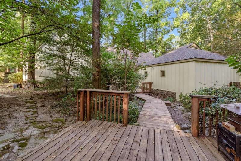 Cottage-like home with an inground pool in a beautiful treed cove. Recent updates include: a new roof, James Hardie siding w/fresh paint, HVAC with central air purifiers, water heaters, chimney lining and architectural cap, Sub-Zero refrigerator and the pool liner was replaced 5 years ago. The kitchen is a chef's delight featuring a gas cooktop, large refrigerator, stainless-steel appliances and two sinks. The vaulted dining room opens to a welcoming large family room with a cozy stone fireplace. Downstairs has 3 bedrooms and 2.5 baths and upstairs offers 2 bedrooms, 1 bath and a large walk-in attic. Throughout the home is warm hardwood and tile flooring, central vacuum wall outlets and a freshly painted interior which feels bright and welcoming. Enjoy the sun room connecting to the patio and decking that lead to the pool. The garden has a variety of native plants and trees making it a nature lover's delight.