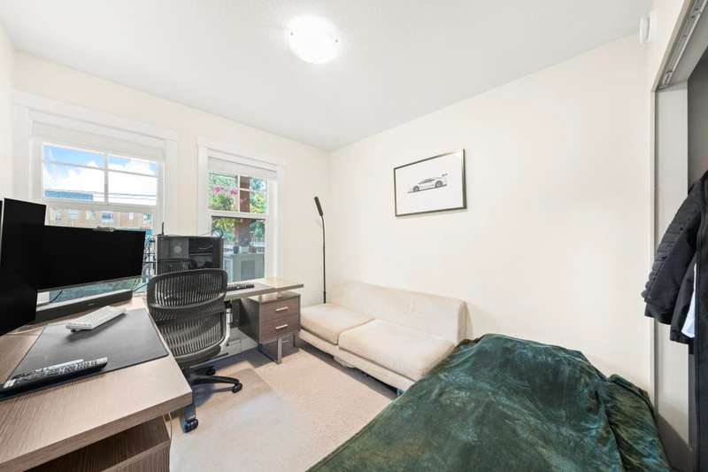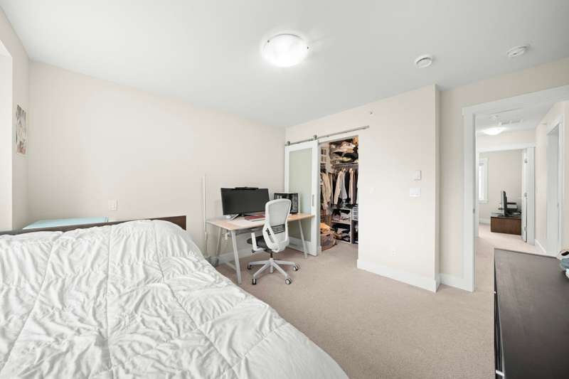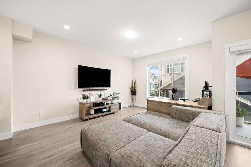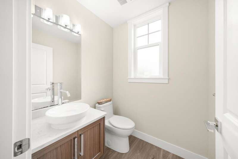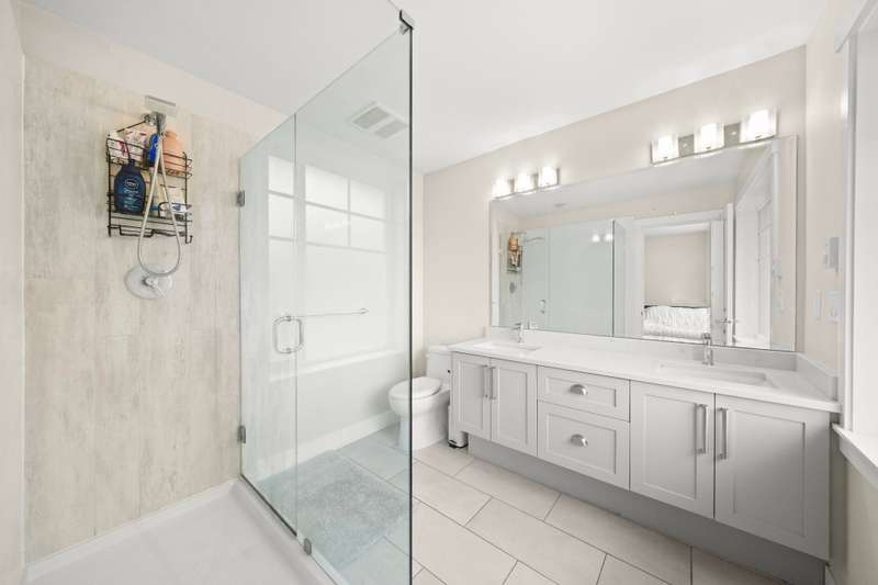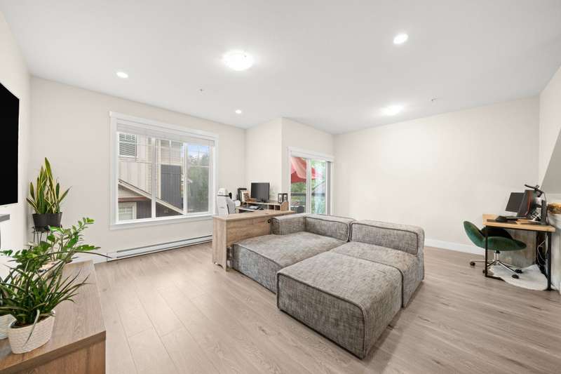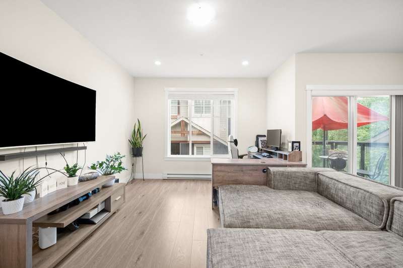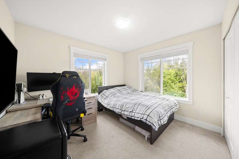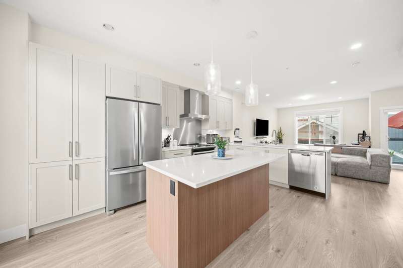 Perfect for both upsizing and downsizing, this rare end-unit townhome truly feels like a house! Backing onto a greenbelt, it offers 4 bedrooms, 3.5 baths, and 1,800 sq.ft. of bright, functional space. The main floor features an open-concept layout with 9' ceilings, spacious living/dining areas, 2 decks, and an L-shaped kitchen with shaker cabinets, quartz counters, stainless steel appliances, and pantry. Upstairs includes 3 bedrooms, highlighted by a serene primary with spa-inspired ensuite and walk-in closet. The lower level offers a versatile 4th bedroom/office, full bath, and walkout to a fenced yard. With double garage and extra spot on the driveway plus visitor stalls and steps to schools, parks, trails, shops, and restaurants, this home has it all.
