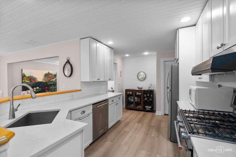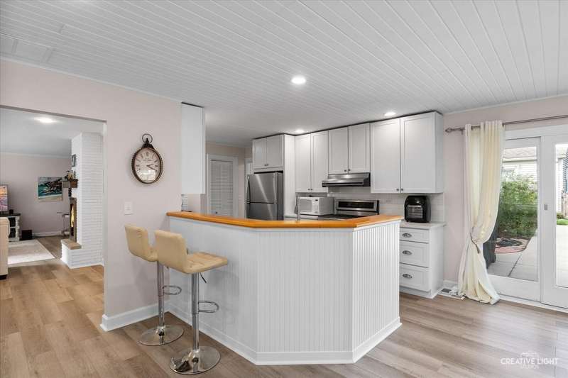 Are you ready to embrace the ease of one-level living in the vibrant community of Wheaton? This charming home is ideally situated just a short walk from Whittier Elementary, Edison Middle School, Mariano's, and the bustling heart of Downtown Wheaton! Step inside this bright and beautifully updated home, where the open floor plan creates a seamless flow from the living spaces to the dazzling kitchen, making it perfect for entertaining or cozy family gatherings. Enjoy the fresh ambiance created by the new luxury vinyl plank floors and on trend paint colors that enhance every room! The kitchen is updated with freshly painted cabinets and features stainless steel appliances, a breakfast bar for casual dining and is open to the dining and family room, perfect for hosting friends and family. The dining room with it's white wood ceiling and canned lighting, also boasts a stunning wall of windows, flooding the space with natural light and offering direct access to your lovingly landscaped yard-a serene outdoor area ideal for relaxing or entertaining! The expansive living room has a cozy double-sided brick fireplace that adds warmth and charm. The primary abedroom has two closets, plus a generous walk-in closet in the hallway for all your storage needs! Both additional bedrooms are bright and spacious, each equipped with ample closet space. The hall bathroom has a beautiful standing shower and a separate soaking tub, while the second bathroom has also been tastefully updated with a tub/shower combo. Need extra space? The spacious laundry room comes complete with a sink and opens into a versatile workroom with tons of storage. Plus, there's easy access to the backyard and garage! With a newer concrete driveway that accommodates 6-8 cars, you'll never have to worry about parking. The attached two-car garage features an epoxied floor and convenient access to the backyard. And let's talk about that yard! This outdoor paradise has been meticulously landscaped over the years, mostly fenced for privacy, and featuring a charming storage shed tucked away in the corner. It's the perfect space for gardening, entertaining, or simply enjoying the great outdoors! Don't miss your chance to make this stunning Wheaton home yours!