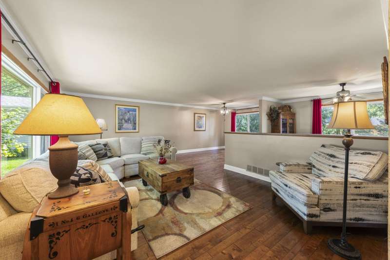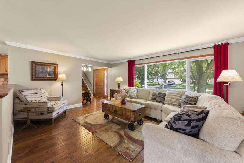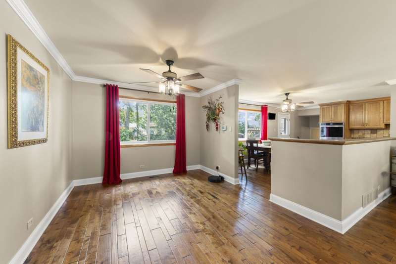 Step into this beautifully maintained and spacious split-level home with a fully finished sub-basement, offering over 2,900 square feet of finished living space-perfect for today's flexible lifestyle needs. Located just minutes from Meadow Glens Elementary, Eagle Park, commuter bus service to Metra station, this home impresses from the moment you arrive. Inside, the main level features Acacia hand-scraped hardwood floors and an expanded, eat-in kitchen outfitted with rich hickory cabinetry, granite countertops, double oven, and new stainless steel appliances-a dream for everyday living and entertaining alike. Outdoor living is a true highlight with an expansive paver patio, pergola, cozy firepit, elevated deck, and a vibrant perennial garden that blooms from spring through fall-your own private sanctuary right in the backyard. Downstairs, the lower-level family room offers a natural wood-burning fireplace and walk-out access to the backyard, creating a cozy retreat for all seasons. Upstairs, you'll find four generously sized bedrooms, including a spacious primary suite with a private ensuite bath. The finished sub-basement adds even more flexibility-ideal for a home office, fitness room, playroom, or media space. Conveniently located near shopping, dining, & highways. This home offers the perfect combination of space, location, and lifestyle. Don't miss your chance to make it yours. Quick close possible!