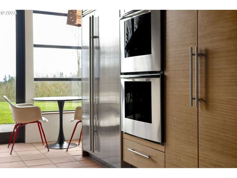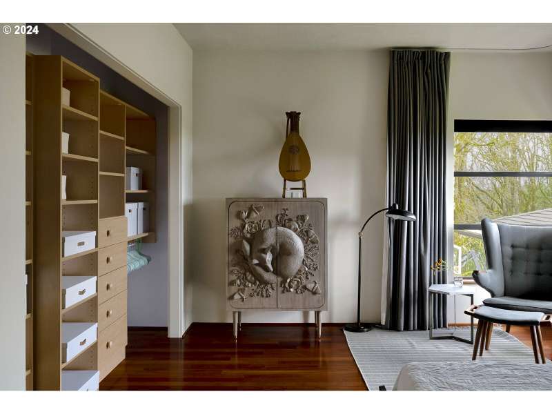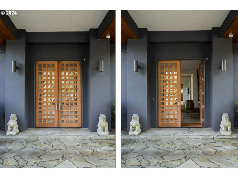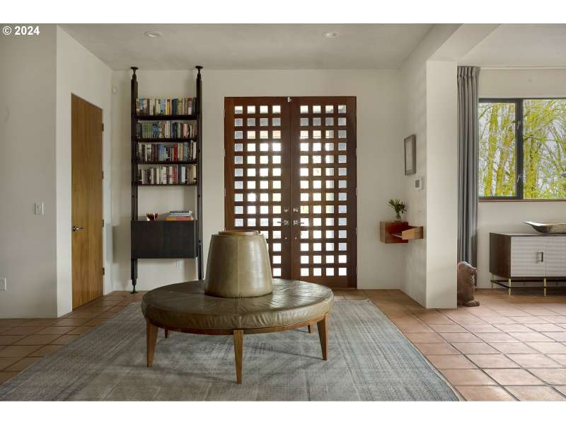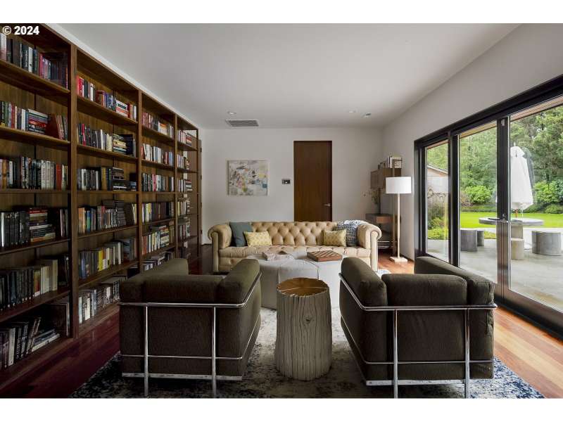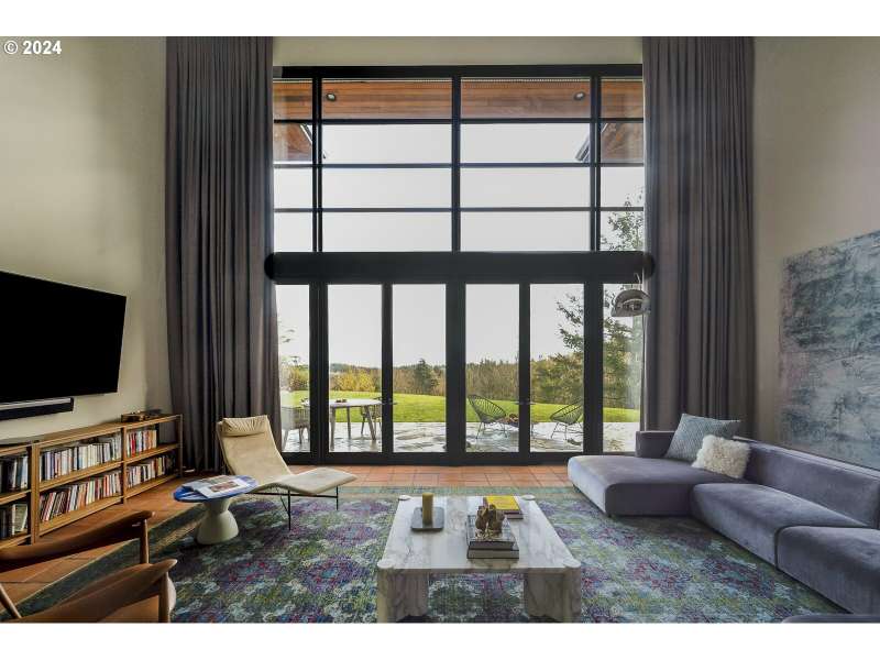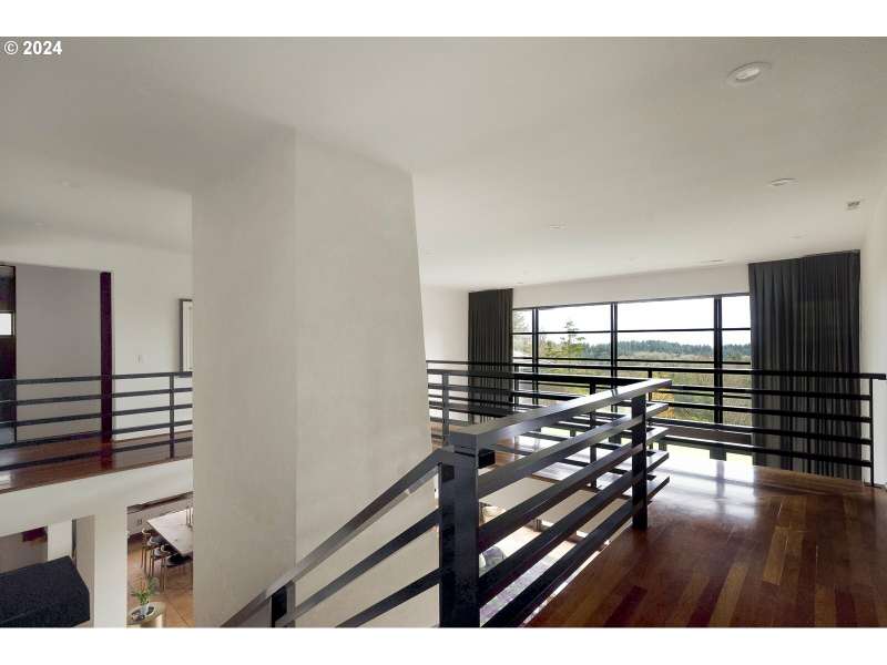 OPEN HOUSE SCHEDULED FOR 10/25 12-2 IS CANCELLED, WILL BE RESCHEDULED. This remarkable contemporary home welcomes at the top of a rise. Nestled on 11 acres of shared conservancy land with inspiring views of Mt Hood. The property is set on .6 acres and bordered by nearly 40 acres of protected forest land. With a gated private drive and exceptional privacy, this property offers a sense of seclusion, while still being conveniently located close to the city. Built in 2001, this Mission-inspired home boasts strong geometric lines, a stucco exterior, and expansive eaves, combining timeless design with modern updates, whole home water filtration and AC. The 4-bedroom, 3.5-bath layout spans two levels, seamlessly connecting indoor and outdoor spaces. The entry features double multi-paned doors and ample storage. An open floor plan with radiant heated Mexican tile flooring throughout flows through the main level, where the living room's double-height windows frame Mt. Hood. Anchored by a wood-burning fireplace, the space is bathed in natural light. The kitchen includes a Sub-Zero refrigerator, double ovens, a 6-burner cooktop, granite countertops, and a cozy breakfast nook. A versatile main-floor office with a gas fireplace, built-ins, and exterior access can function as a den, music room, or guest suite, adjacent to a full bath. Upstairs, the primary suite boasts a private covered balcony, Mt. Hood views, a gas fireplace, and a luxurious ensuite with a jetted tub, double shower, forest views and large walk-in closet. Three additional bedrooms, a full bath, a large den and a laundry room complete the upper level. The outdoor amenities are unmatched: a heated pool, 3 saunas (wood-burning, infrared + electric ) cold plunge, and hot tub—all surrounded by mature trees for privacy. The 8-car garage, with a mini split for heating and cooling, offers gym space and abundant storage. [Home Energy Score = 4. HES Report at https://rpt.greenbuildingregistry.com/hes/OR10234334]