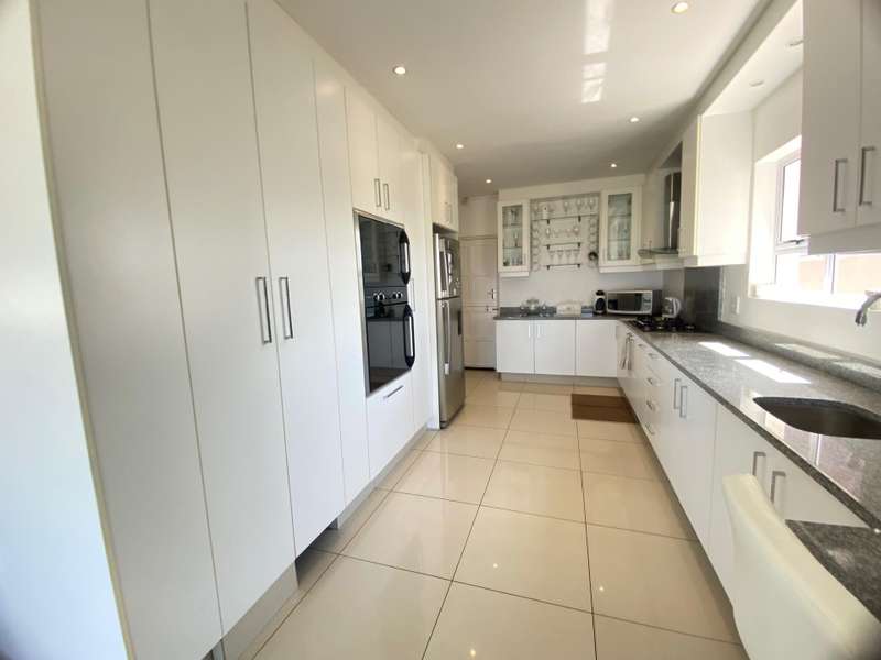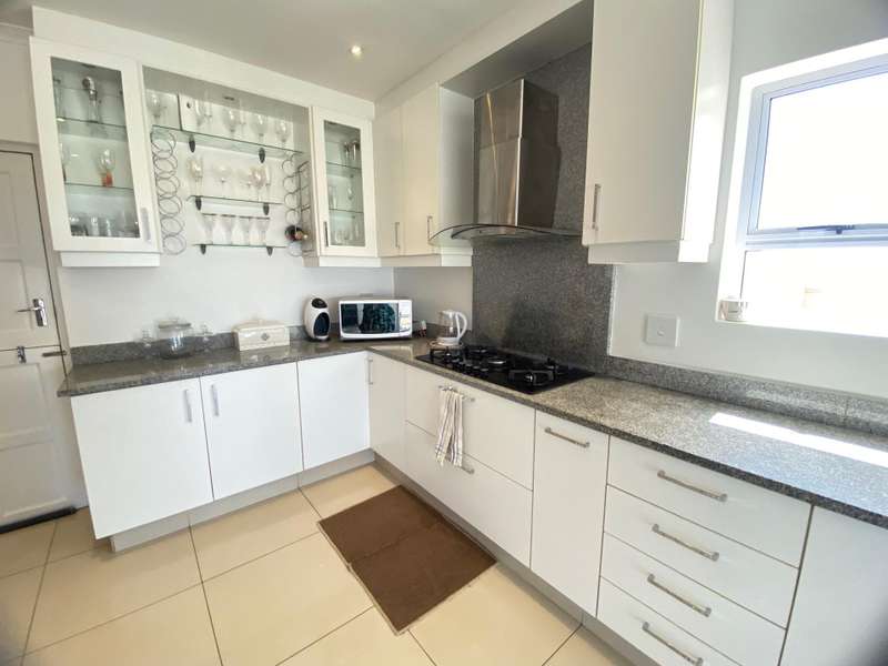 This stunning multi-level house offers the perfect blend of luxury, style, and comfort. Boasting four spacious bedrooms, two with its own en-suite bathroom, this home is designed for modern living at its finest. From the gourmet kitchen, featuring high end appliances such as a gas stove, eye-level oven, to the open-plan lounge and dining area, every detail has been carefully curated for elegance and convenience. Enjoy breathtaking sea views from two balconies, or entertain effortlessly on the large, covered patio, which leads to an enclosed private garden. Additional features include a spacious 2-car garage, scullery, a guest toilet and the peace of mind of living in a secure complex within a 24-hour guarded estate. This exceptional residence is the epitome of sophisticated coastal living with quick access to the N2, close to shops, schools and restaurants. Call exclusive viewing today !