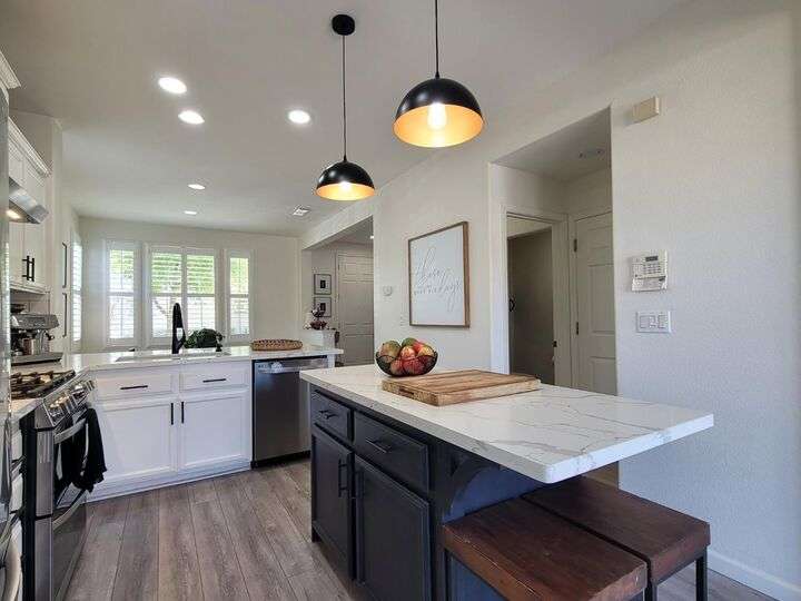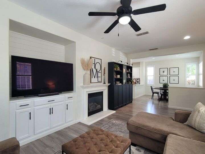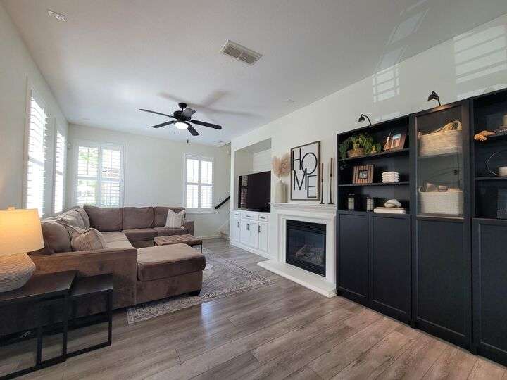 Beautifully upgraded home on premium sized lot in The Oaks at Willow Springs Village. This 2006 built home offers 3 bedrooms, 2.5 baths, attached 2 car garage, on an over 3600 square foot lot. Living room with gas fireplace, custom built-in media niche and wired for surround sound. Kitchen has quartz counters, subway tile backsplash, custom lengthened island with seating, painted white maple cabinets, pantry closet, kitchen nook with cabinets and computer niche and direct slider access to backyard and a formal dining area. Plantation shutters throughout the house. Laminate floors throughout downstairs and Stainmaster carpet in the stairway, upstairs landing and all bedrooms. Master bath has a shower stall, soaking tub, and a large walk-in closet. Upstairs laundry room with cabinets and utility sink. The home is light and bright throughout. Located nearby Willow Hill Reservoir Community Park w/ playground, trails and the high school. Wired ADT security system. Great opportunity to live in this highly desirable community!