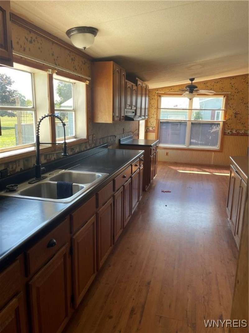 Please note: This listing is for the home only. No land is included in the sale, and the home must be moved at the buyer's expense.Well-maintained 1996 Skyline manufactured home offering 3 bedrooms and 2 full bathrooms. The home features an open-concept design with a large living, family, and dining area centered around a wood-burning fireplace. The kitchen has been updated with modern cupboards and countertops.Recent upgrades include a metal roof installed approximately 5 years ago, new hot water tank, blown-in insulation underneath, and replacement windows throughout (except for three).Ideal for: placement on private property, seasonal use, or as an affordable rental investment opportunity.