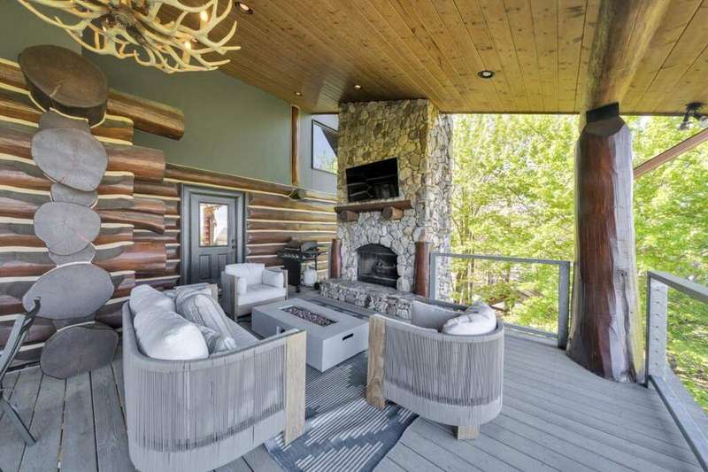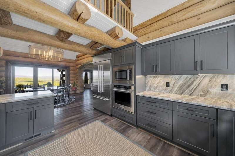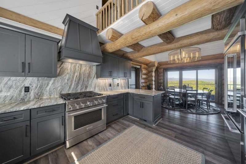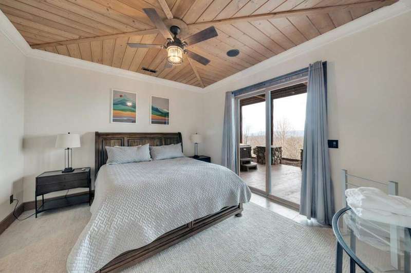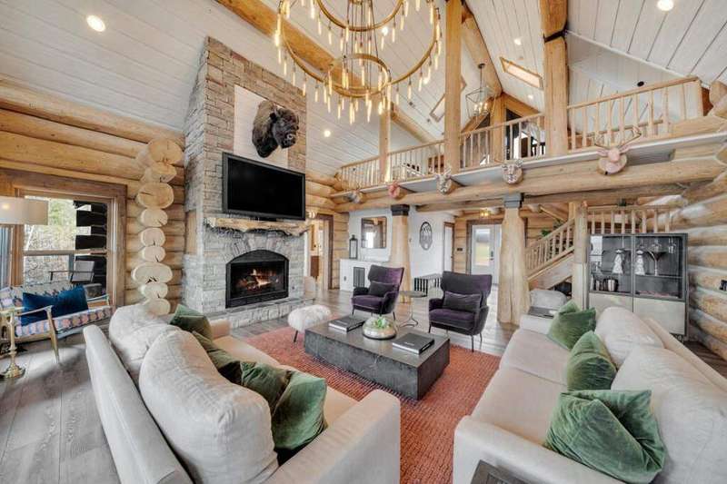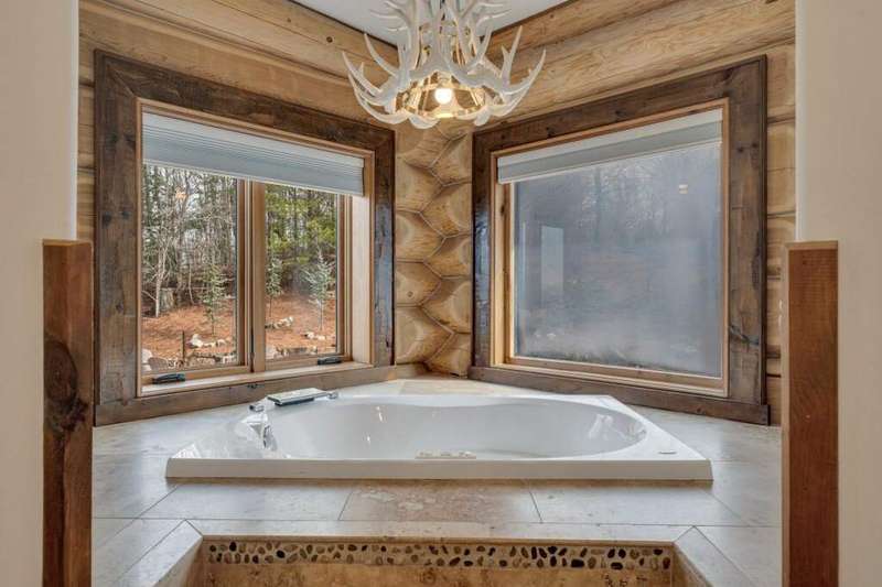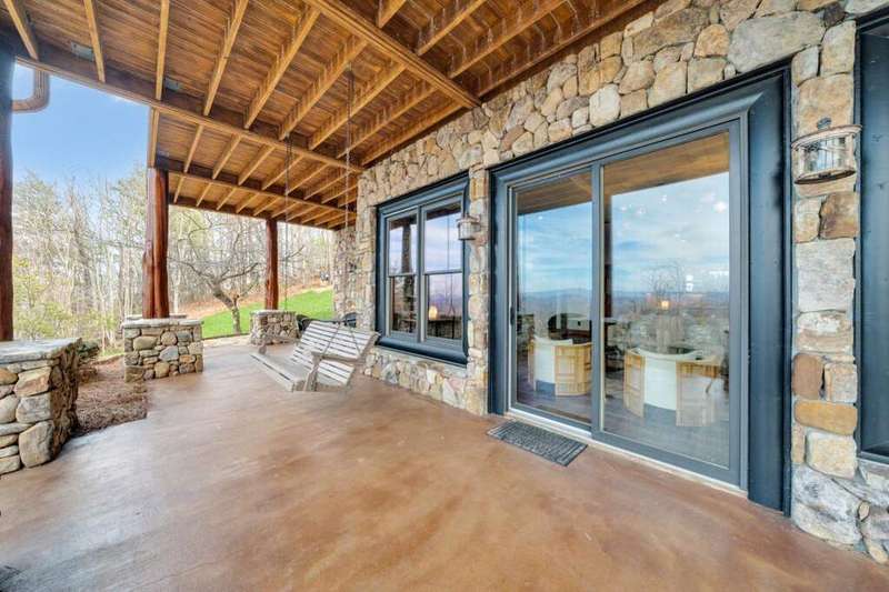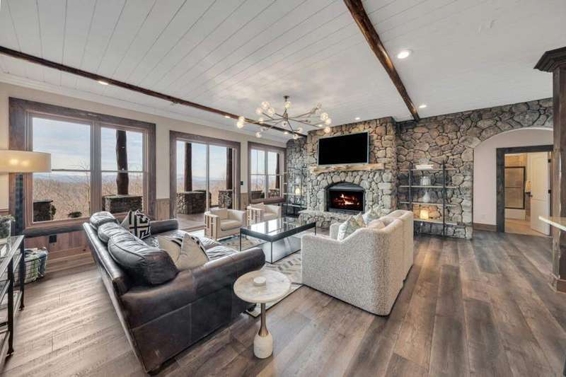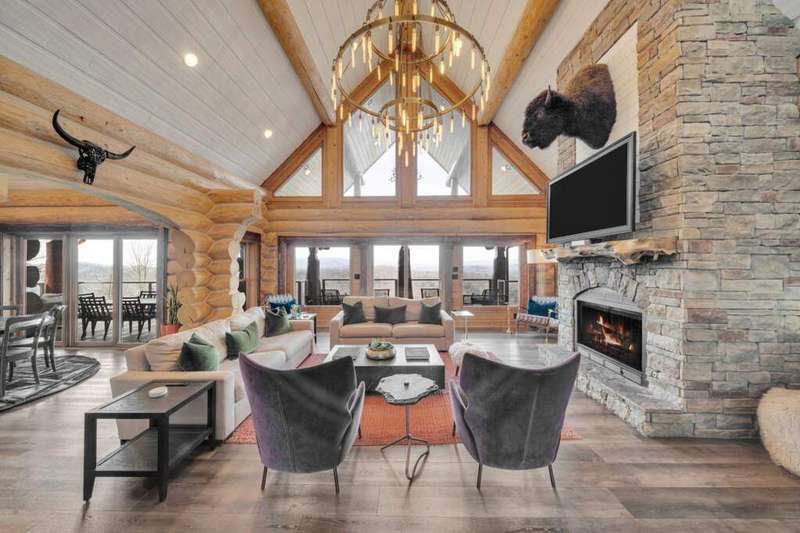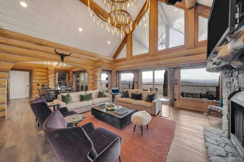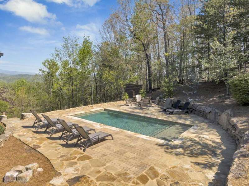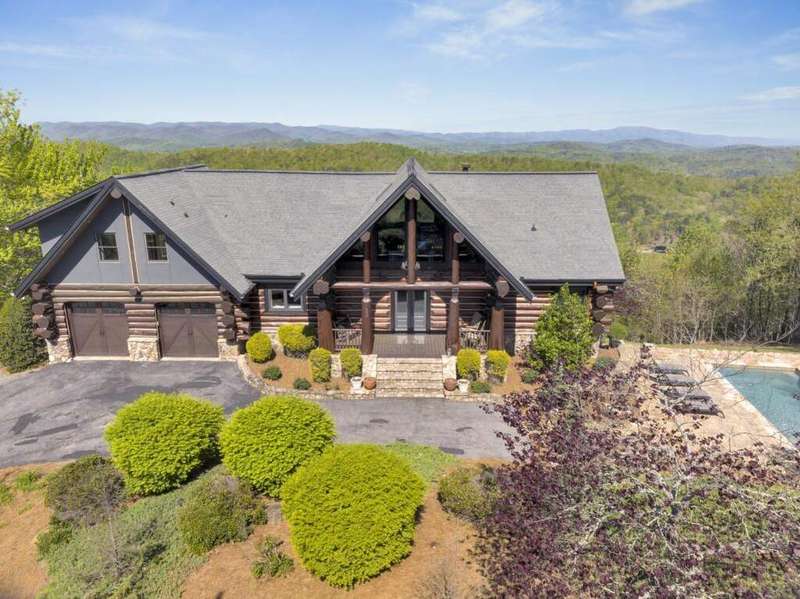 Welcome to this grand mountaintop Canadian Log home in the heart of the Aska Adventure Area with the best views in Blue Ridge! Available fully furnished for your immediate enjoyment. This spacious home has 5 bedrooms plus a bonus bunk room and loft, 4 full bathrooms, 2 half bathrooms, 2 kitchens, and rare 2 car garage. It recently underwent a complete remodel, including new kitchen, bathrooms, flooring, RH lighting, interior painting, exterior staining, and custom furnishings throughout. A new heated saltwater pool and separate hot tub provide endless relaxation and entertainment. Take in the breathtaking sunsets and long-range views from the expansive deck complete with gas fireplace, or relax inside and take in the row after row of beautiful mountains that greet you from almost every room. This private retreat is in the heart of it all in the Aska Adventure Area and Toccoa River, and a short 10-minute drive on all paved roads to downtown and Lake Blue Ridge. Currently a sought-after vacation rental with over $260,000 in annual revenue, or perfectly suited as a private residence, making this such a desirable property in Blue Ridge.