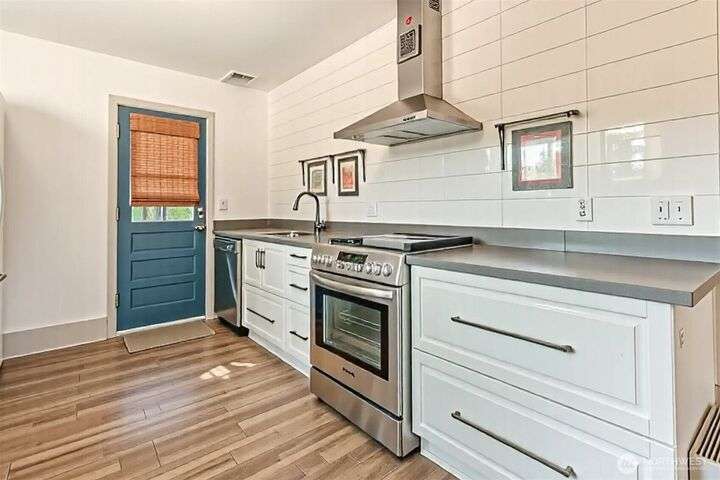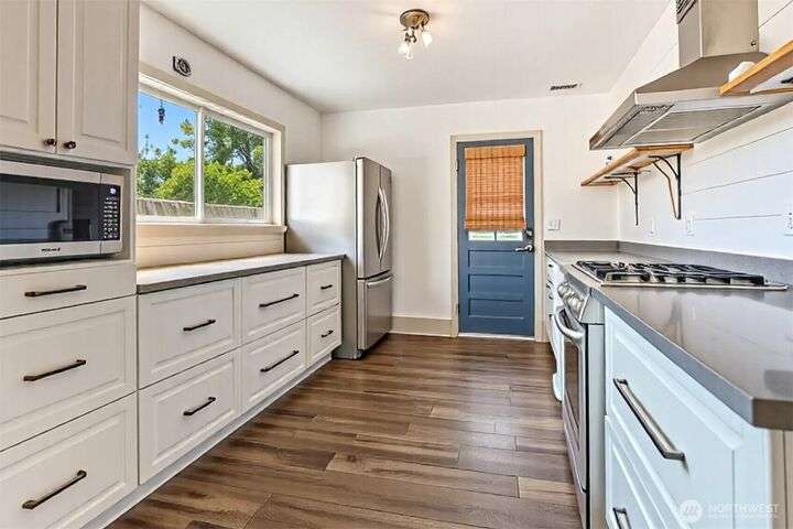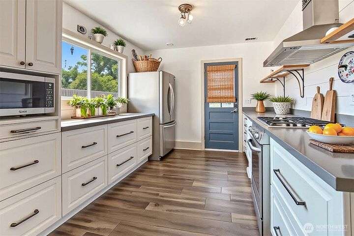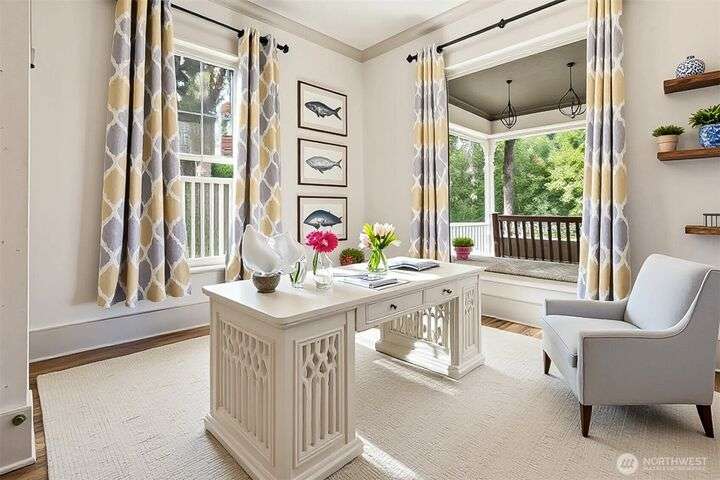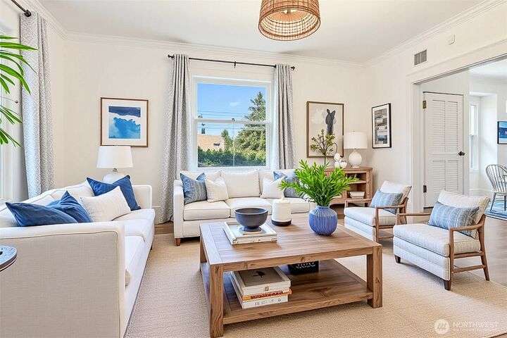 A welcoming covered porch sets the tone for this timeless craftsman-style farmhouse in Magnolia. A farm-style kitchen with high ceilings, formal living, dining space and full bath. Upstairs, three large bedrooms plus a half bath. The finished basement adds versatility with a three-quarter bath, additional living space, and ample storage. Currently configured as a business, the lower level could also function as an ADU or MIL suite. On a corner lot, large level yard wraps around the home, providing generous outdoor space for play, gardening, or entertaining. With privacy, character, and unbeatable walkability to Magnolia’s parks, schools, shops, library, and transit, this home offers both immediate comfort and incredible future potential.