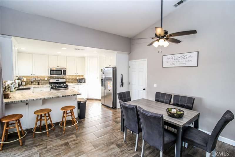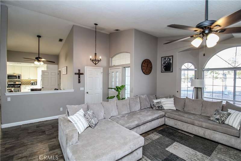 Offering 3 bedrooms, 2 baths, and 1,801 sq ft, the open floor plan boasts vaulted ceilings, abundant natural light, and beautiful wood-look tile flooring. Fresh designer paint and ceiling fans in every bedroom showcase pride of ownership throughout.