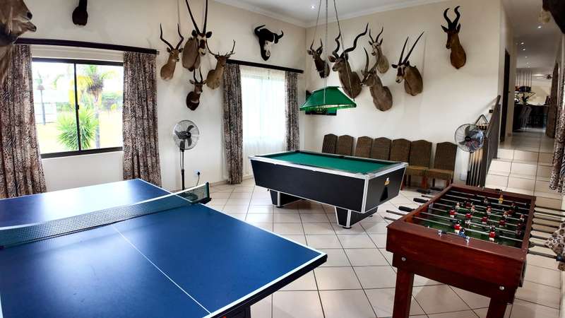 Luxury Game Lodge for Sale – Rooiberg Bavaria Area All-inclusive lodge sold fully furnished with loose assets. Farm Overview Flat to slightly sloped terrain with cleared bush and excellent grazing with 2 seasonal streams. Fully game-fenced with 2.1m fencing and extra-deep galvanised mesh. 4× 25Ha breeding camps (2.1m electric fence with solar and batteries, galvanised mesh, underground conveyor belts) 4× Feeding camps Revolving camp with 3m high conveyor All Eskom cables installed underground 1× Eskom point 5× Boreholes with strong water (2× electric, 3× solar) Generator capable of running the entire farm 15× 10 000L Water tanks 5000L Diesel tank Main Lodge (±1600 sqm) 15× Bedrooms with en-suite bathrooms Entertainment room 2× TV rooms Bar Dining area Kitchen, scullery, laundry and pantry Office Strong room Walk-in cold room with freezer Lapa with 2× built-in braais Swimming pool 4× Garages 2× Staff quarters with en-suite bathrooms Farm Manager’s House (±140 sqm) 2× Bedrooms 1× Bathroom Open-plan kitchen, dining, and lounge area Entertainment room with built-in braai Fire pit Single garage Infrastructure 900 sqm shed (150 sqm lucerne storage, 750 sqm workshop) Poison room Skin-drying room Slaughterhouse with full facilities and cold room 100m Shooting range 5× Staff quarters with en-suite bathrooms Staff TV room Staff kitchen Staff fire pit 4× Elevated hides 1× Bow hide 3× Cement dams 3× Earth dams Loose Assets Included: Toyota Land Cruiser game viewer Toyota Hilux with hunting frame Toyota Hilux farm manager vehicle Polaris Crew 4×4 900 (6-seater) 2× Landini tractors John Deere lawn mower TLB with Scissor attachment for tree cutting Slasher 1× 1000L Diesel tanker with pump 2× 1000L Water tankers with pumps 2× Compressor 2× Small welding machines Circular saw Game (Available at Additional Cost) Buffalo Blesbuck Wildebeest (Blue & Golden) Eland Gemsbuck Giraffe Impala (Common, Black, Saddleback) Kudu Ostrich Red hartebeest Waterbuck Zebra Warthog Bushpig Steenbuck Duiker Plaas Oorsig Gelyk tot effens skuins terrein met skoongemaakte bos en uitstekende weiding, met 2 seisoenale strome. Volledig wildomhein met 2.1m heining en ekstra-diep gegalvaniseerde gaas. 4× 25Ha teelkampe (2.1m elektriese heining met sonkrag en batterye, gegalvaniseerde gaas, ondergrondse vervoerbande) 4× Voerkampe Roterende kamp met 3m hoë vervoerband Alle Eskom-kabels ondergronds geïnstalleer 1× Eskom-punt 5× Boorgate met sterk water (2× elektries, 3× sonkrag) Kragopwekker wat die hele plaas kan bedryf 15× 10 000L Water Tenks 5000L Diesel Tenk Hooflodge (±1600m²) 15× Slaapkamers met en-suite badkamers Vermaakkamer 2× TV-kamers Kroeg Eetarea Kombuis, opwas, wasgoedkamer en spens Kantoor In-loop Kluis Stap-in koelkamer met vrieskas Lapa met 2× ingeboude braais Swembad 4× Motorhuise 2× Personeelkwartiere met en-suite badkamers Plaasbestuurderhuis (±140 m²) 2× Slaapkamers 1× Badkamer Oopplan kombuis-, eet- en sitarea Vermaakkamer met ingeboude braai Vuurput Enkelmotorhuis Infrastruktuur 900m² skuur (150m² lusernberging, 750m² werkswinkel) Gifkamer Vel Kamer (vir velle wat droog) Vleiswerking met volledige fasiliteite en koelkamer 100m Skietbaan 5× Personeelkwartiere met en-suite badkamers Personeel TV-kamer Personeel kombuis Personeel vuurput 4× Verhoogde skuilings 1× Boogskietskuiling 3× Sement damme 3× Grond damme Los Bates Ingesluit Toyota Land Cruiser wildritte-voertuig Toyota Hilux met jagraam Toyota Hilux plaas bestuurfer voertuig Polaris Crew 4×4 900 (6-sitter) 2× Landini-trekkers John Deere grassyer TLB met skêr-aanhegting vir bome Snyer (slasher) 1× 1000L Diesel tenk wa met pomp 2× 1000 L Water tenk wa met pompe 2 × Kompressors 2 × Klein sweismasjiene Sirkelsaag Wild (Beskikbaar teen Addisionele Koste) Buffel Blesbok Wildebees (Blou & Goue) Eland Gemsbok Kameelperd Rooibok (Gewoon, Swart, Saalrug) Koedoe Volstruis Rooihartbees Waterbok Sebra Vlakvark Bosvark Steenbok Duiker