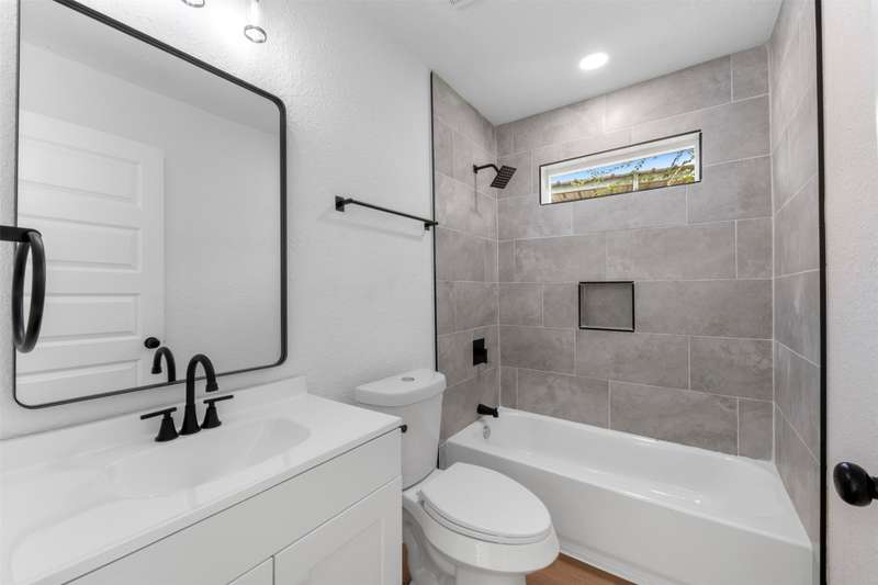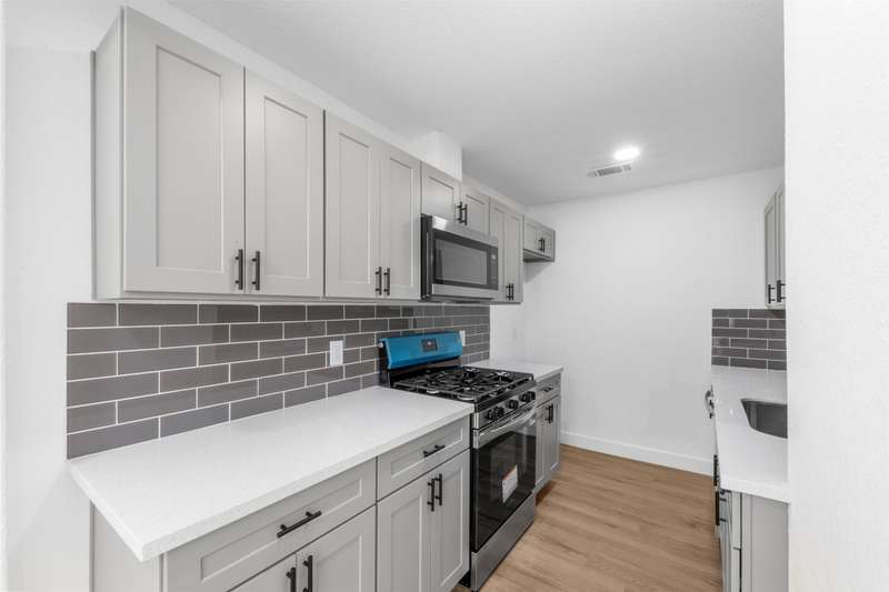 Entire home was taken down to the studs and completely rebuilt in compliance with City of Pasadena building standards. The front house features 2 bedrooms and 1 bath with water-resistant vinyl plank flooring throughout the living, dining, and kitchen areas, tile in the bathroom, and carpeted bedrooms for added comfort. The kitchen showcases soft-close white shaker cabinets, quartz countertops, and a classic subway tile backsplash. Guest quarters include a full bathroom and a spacious walk-in closet, perfect for extended family, guests, or rental income. Situated on a large lot in a quiet, established neighborhood, this property offers ample outdoor space for gatherings, gardening, or future expansion. Conveniently located near major highways, schools, and local amenities, this Pasadena gem combines modern finishes with thoughtful functionality, ready for its new owner to move in and enjoy!