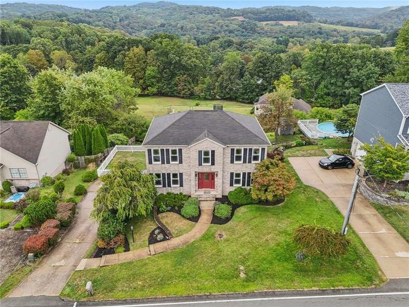 Custom stately brick home with an open floor plan & stunning updates throughout! The foyer leads to an updated kitchen featuring granite countertops, center island, upgraded stainless steel appliances, & smart refrigerator. Enjoy morning coffee in the breakfast area or on the deck with incredible views of the rolling hills of Penn Township/Murrysville. The fabulous family room offers a gas fireplace & bay window with french doors to formal living. Formal dining rooms showcase crown molding. The primary suite boasts a walk-in closet & spa-like bath with jet tub with shower, & vessel sink. Convenient 2nd floor laundry. Finished lower level with powder room & walkout to Omni brick patio overlooking a large lush yard. New windows! Fantastic location just minutes to shopping, dining, Rt 22 & the Turnpike.