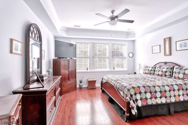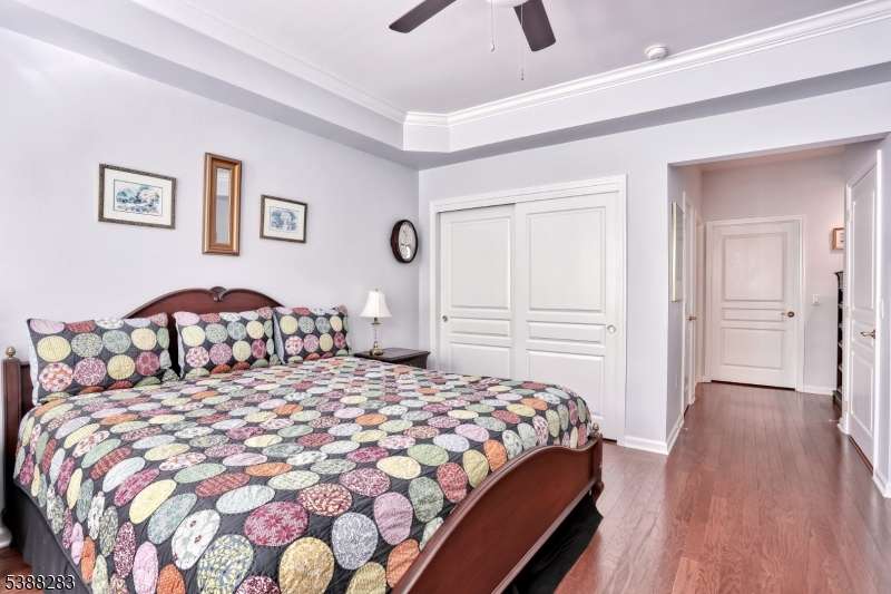 Wonderfully updated 1768 SF Colfax unit in Wanaque Reserve, a Del Webb active adult 55+ community, with those special touches that make it one-of-a-kind. This move-in ready home features hardwood floors throughout, a primary bedroom ensuite with full bath, tray ceiling and WIC, 2nd bedroom, FB, EIK with granite counters, stainless steel appliances and tile backsplash, LR, formal DR and den/home office with French doors. The LR sliding doors open to a tiled balcony with tree and greenery views. Amenities include a deeded underground parking spot, 24-hour security, ceiling fans in each room and granite counters in all bathrooms and laundry room. The 20,000 SF clubhouse has a cafe, ballroom, exercise room, theater, sauna, indoor and outdoor pools and more than 45 clubs and activities, which include the travel club (cruises, day trips, casino trips), tennis, pickleball, canasta, poker, golf, etc. WR offers a luxurious lifestyle for its residents, which has a focus on modern amenities, security and a sense of community. The recent renovation adds a fresh and updated living environment.