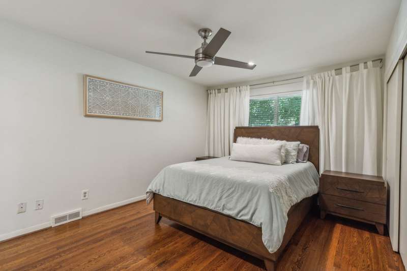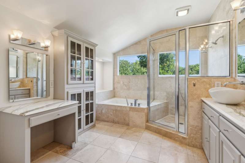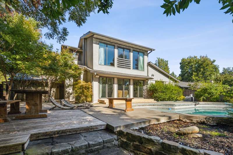 This stunning updated mid century home sits on a creek lot! You are welcomed by an enormous living area and kitchen with granite countertops, new appliances and walk-in pantry. Real hardwood floors throughout main rooms - no carpet! Owner's suite is nestled in the treetops with privacy along with an oversized en suite bathroom, his and her vanity, and walk in closet. A second owner's suite on the main floor with an en suite bathroom. The backyard is an oasis with in-ground pool and multiple entertaining areas all overlooking the green space. Every view from inside and out is a park like setting perfect for enjoying the Texas weather. Truly a one of a kind home that has been meticulously maintained.