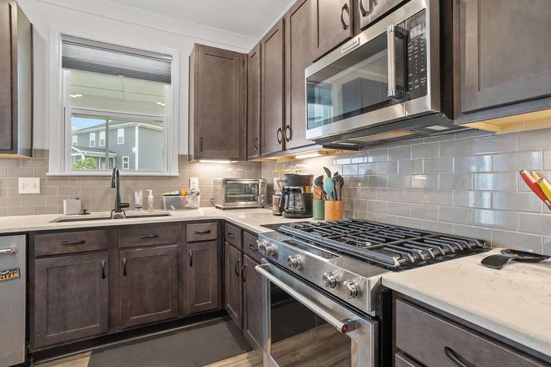 Spacious 2451 SF, quality-built KB Home in beautiful Timberleaf with 2-car garage! 2023 solid KB craftsmanship feels brand new! Southern exposure, 5 bedrooms, & 3 full baths! This is an ENERGY STAR CERTIFIED home, which means improved energy efficiency, enhanced comfort, better indoor air quality, lower energy bills, and higher value! Kitchen has center island, stainless steel appliances, gas range, abundant storage, and Silestone countertops. Fridge & W&D convey! Open central living area consists of living room, dining, and kitchen. Covered porch in front, expansive 10.5' x 20' screened porch in back overlooking fenced yard. 9 ft ceilings on main floor. Ceiling fans throughout. Two walk-in closets, plenty of storage. Primary suite has large bathroom with separate shower and tub. Low maintenance exterior of fiber cement siding. Walkable neighborhood. Unbeatable location: short commute to Duke Regional Hospital, Duke University, RTP, RDU, Falls Lake, and lively downtown Durham - including Durham Performing Arts Center, Durham Bulls Athletic Park, shopping, dining, and entertainment.