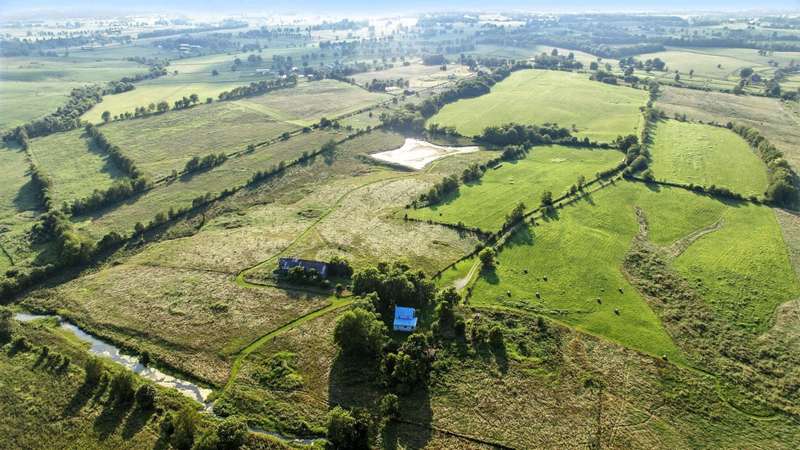 Offered in conjunction with the sale of 405 Iron Works Road, the 150-acre La Vista Farm in Paris, Kentucky, features gently rolling pastures and approximately 1,500 feet of road frontage. Located just 2 miles from La Vista Estate, this acreage presents an opportunity to own additional Bluegrass farmland in a desirable location. Green Creek runs across the back of the property, and a stocked pond adds a peaceful focal point and recreational appeal. Plank fencing lines the road frontage, with wire fencing enclosing the rest of the property. The historic Tevebaugh House and a 9-bent barn remain on site; both are in poor condition and considered to have no value. City water and electric service are active.