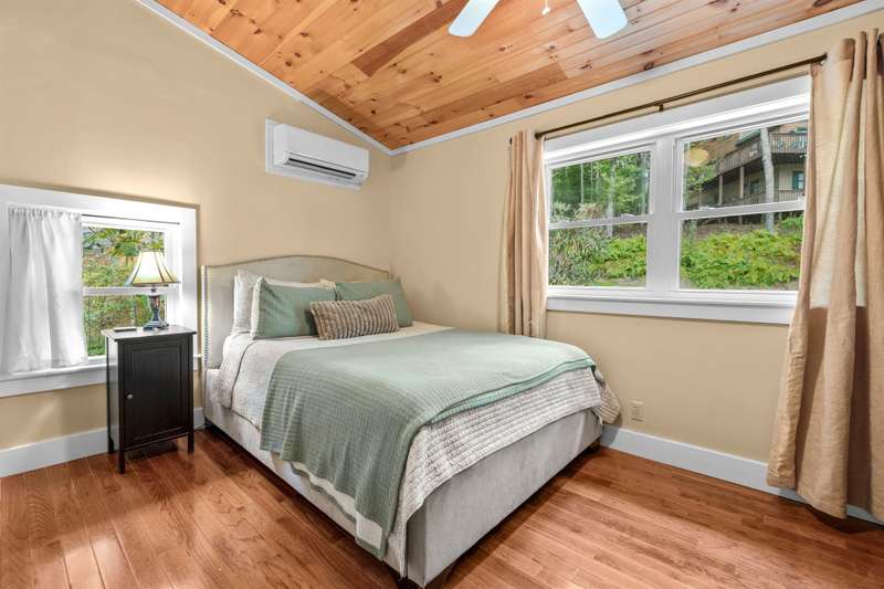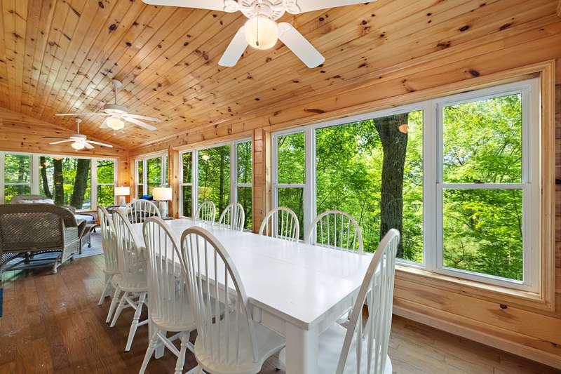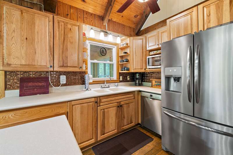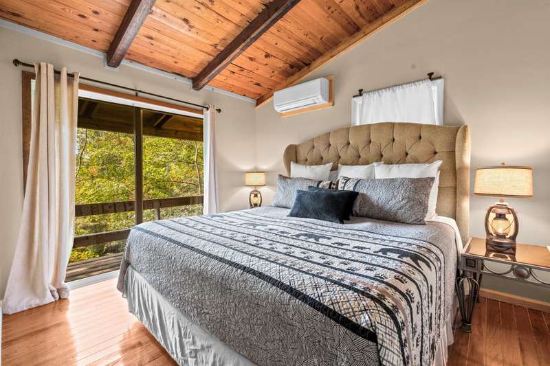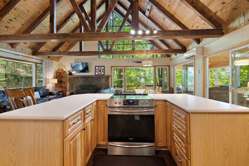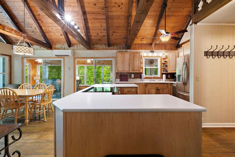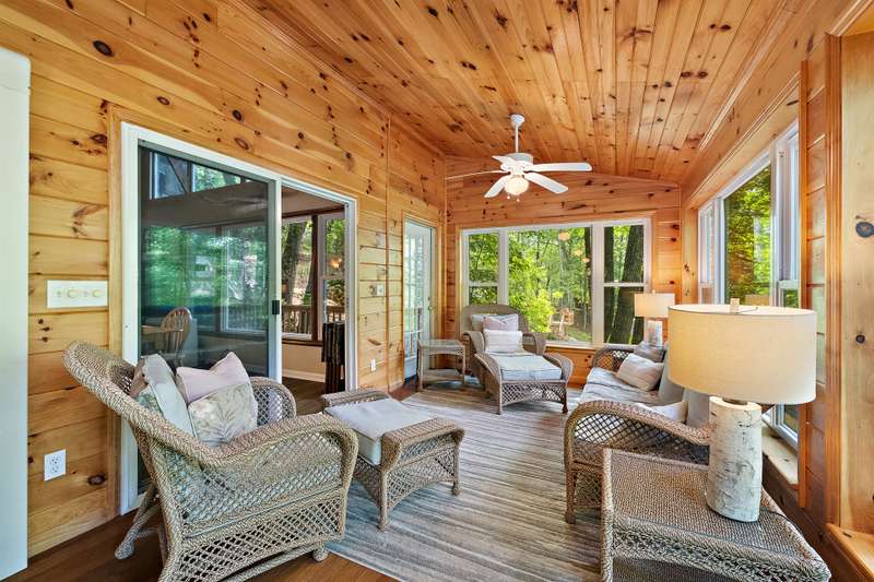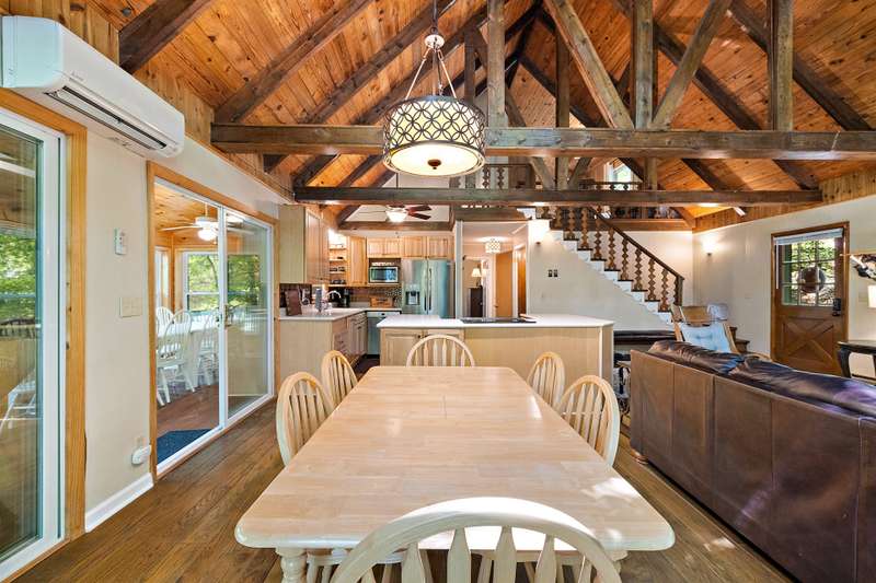 Discover the enchanting allure of this mountain retreat, perfectly nestled within the serene landscapes of Fleetwood Falls, directly across from the tranquil New River. This captivating property, a flourishing rental for outdoor enthusiasts, invites you to embrace the beauty of nature. As you step inside this 3-bedroom, 3-bathroom lodge, you're greeted by soaring vaulted ceilings and exposed wood beams that create an atmosphere of warmth and connection. The timbered great room, with its striking stone fireplace and inviting wide-plank flooring, beckons you to gather with loved ones. Expansive wall-to-wall windows frame stunning views that change with the seasons, enveloping you in the serenity of your surroundings. Significant upgrades enhance this haven, from new drywall and modern kitchen cabinets to efficient mini-splits on every level. A new water heater and a protective BCI metal roof, featuring a transferable lifetime warranty, ensure peace of mind. The basement features stylish LVP flooring, while a fenced area for pets and extended parking add convenience. Each level is designed for seamless indoor/outdoor living, perfect for entertaining and enjoying the natural beauty that surrounds you. Explore community hiking trails that lead to enchanting creek falls or find tranquility by the stocked lake, where you can engage in fishing and spend lazy afternoons at the pavilions. Centrally located between the vibrant towns of Boone and Jefferson, this home offers effortless access to adventures along Railroad Grade Rd, from tubing and kayaking to cycling, dining, and skiing. This remarkable lodge stands ready to be your successful rental, cherished second home, or spacious primary residence. Embrace the extraordinary and make this mountain retreat your own.