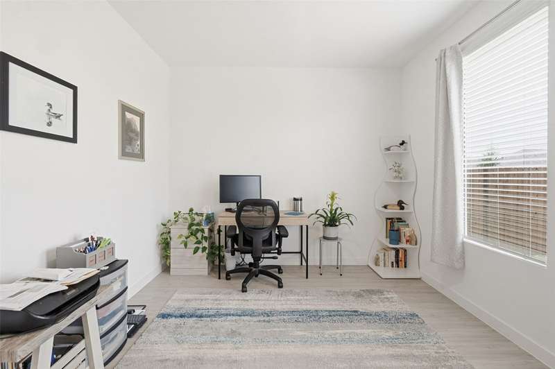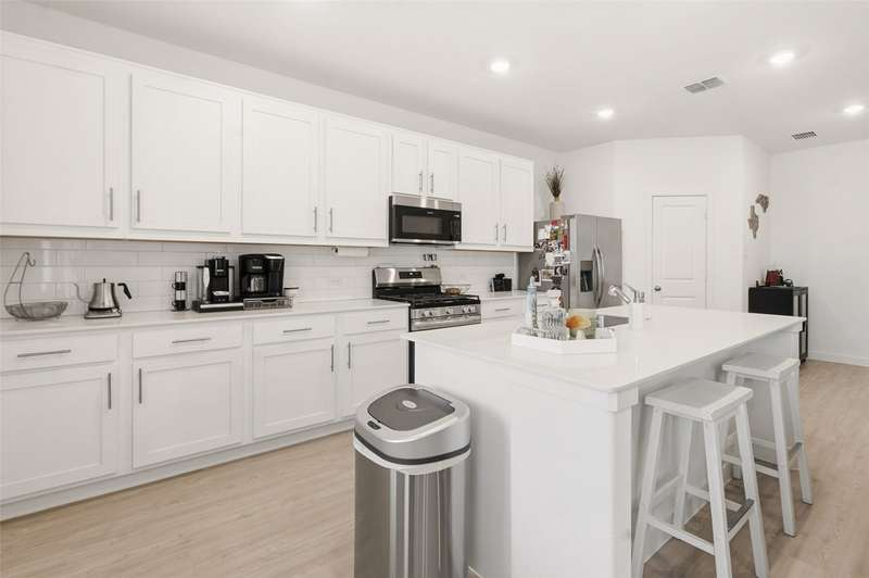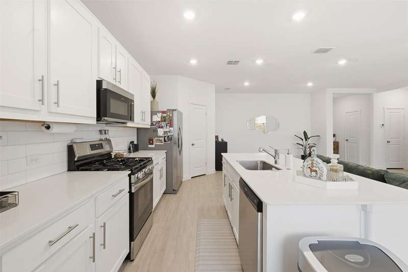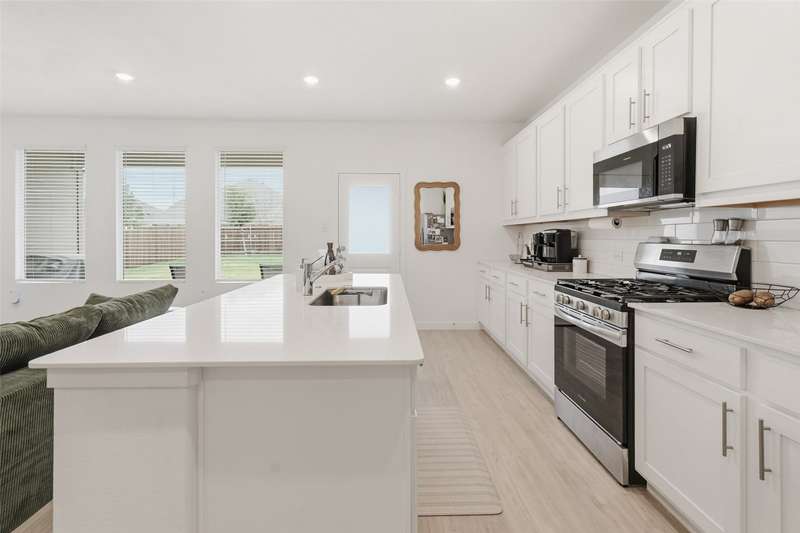NO SECURITY DEPOSIT for 18 month lease term and well qualified tenant!!!Beautiful 4-Bedroom, 2-Bathroom Single-Story Home! This modern home offers an open-concept layout with spacious living and dining areas perfect for entertaining. The kitchen features white cabinets, granite countertops, stainless steel appliances, and a large island ideal for meal prep or gatherings. Enjoy durable vinyl flooring in main areas and soft carpet in the bedrooms. The primary suite includes a private bath, while the additional bedrooms provide flexibility for guests, an office, or hobbies. Outside, relax in the fenced backyard with a covered patio great for outdoor dining or play. A 2-car garage and private driveway offer convenience and storage. With its stylish finishes and functional design, this move-in ready home delivers comfort and charm in every detail!