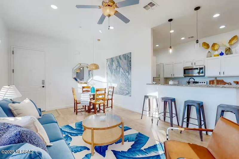 This incredibly situated, fully furnished & stocked, spacious, contemporary condo is located directly adjacent to BOTH renowned St. Philip's Plaza at Campbell & River AND the Rillito River! Walking distance to huge array of restaurants, shops, services, Trader Joe's & more, & a quick drive to upscale La Encantada mall. Walk directly from the grounds onto the famous Chuck Huckleberry Loop, aka ''The Loop,'' a system of 138+ miles of paved, shared-use paths perfect for walking, biking, & running.The unparalleled location offers the prestige & luxury of 85718 foothills zip code & just a short commute to U of A, downtown, hospitals, culture & the rest of the city.Perfect for students, vacation home, turnkey investment property, or ultimate full-time low-maintenance home! New AC 8/2022