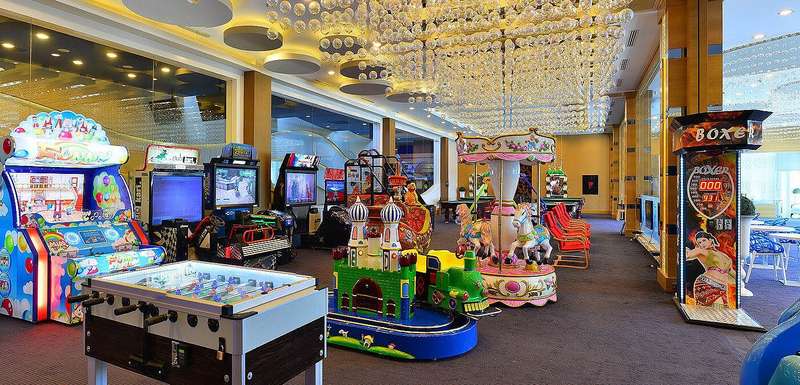 The three-block complex, spanning a total area of 25,689 m², offers various amenities; including indoor and outdoor swimming pools, a sauna, a relaxation room, children's and adults' game rooms, massage rooms, a Turkish bath, a gym, a cinema hall, a bar and disco, a bowling game room, a mini club, a reception, a restaurant, shops, a market, a café, an aquapark, a tennis court, a basketball court, a children's playground, a communal garden, a sports area in the garden, parking lot and parking garage, a generator, a concierge, a reception, and a daily shuttle service to the beach.