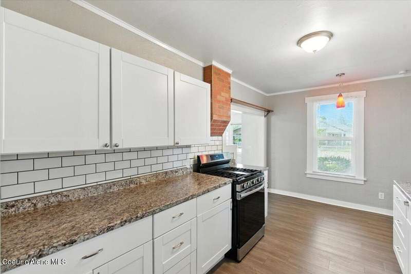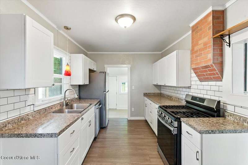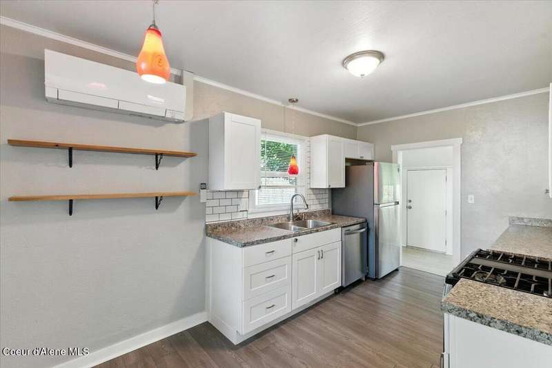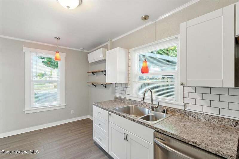 Charming and move-in ready, this updated 2-bedroom, 1-bath home with a 20x30 detached shop garage in downtown Coeur d'Alene offers the perfect blend of character and convenience—just minutes from Sherman Ave, Tubbs Hill, and Lake Coeur d'Alene. The bright, open living space is filled with natural light and flows seamlessly into a stylish kitchen featuring shaker cabinets, subway tile, and stainless steel appliances. Comfortable bedrooms and fresh finishes throughout add to the home's appeal. Outside, enjoy a fully fenced yard with mature landscaping, gardening space, and alley access. With off-street parking and no HOA, this property is ideal for full-time living, a vacation retreat, or a smart investment opportunity.