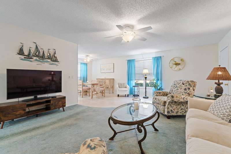 Welcome to this beautifully maintained, fully furnished and turnkey first-floor corner unit in the desirable 55+ Vista St. Lucie community. This 2-bedroom, 2-bath condo offers comfortable, low-maintenance living in a peaceful and active neighborhood.Step inside to a bright and welcoming living area, a practical kitchen with ample storage and a dining space perfect for everyday meals or hosting. The primary bedroom features an en-suite bathroom with a walk-in shower and the guest bedroom offers flexibility for visitors, hobbies or an office.Enjoy your morning coffee on the private screened patio and take advantage of the in-unit washer/dryer hookup, located in the storage closet just inside the unit. (No washer/dryer currently installed--tenant may add their own.)