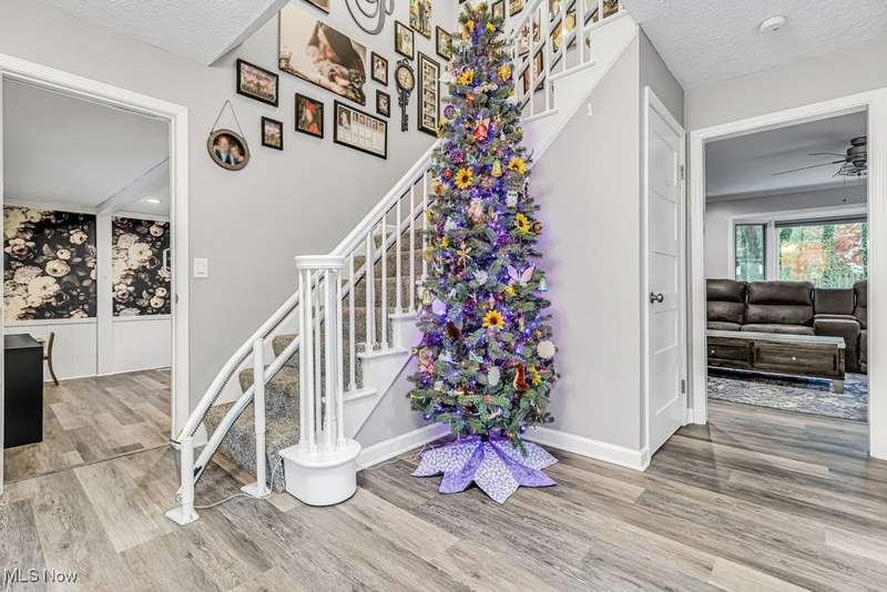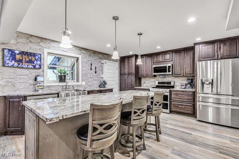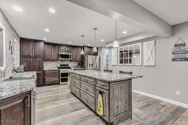 Welcome to 9100 Terrace Park Drive in Mentor ? a stunning traditional center hall colonial beautifully updated for modern living. This spacious home offers 4 bedrooms, 2.5 bathrooms, and an inviting floor plan perfect for both everyday comfort and entertaining. The living room flows seamlessly into the eat-in gourmet kitchen, featuring granite countertops, newer stainless steel appliances, a large island, walk-in pantry, high-end fixtures, and a sliding glass door leading to the backyard. An additional family room showcases a wood-burning fireplace with a custom Amish-made mantle and direct access to the large back deck. Convenient first-floor laundry includes a new washer and dryer. Upstairs, you'll find four generous bedrooms, including a primary suite with its own private en-suite bath. The finished lower-level rec room with new flooring adds even more living space. Enjoy peace of mind with a new HVAC system installed in 2019. Outside, the fully fenced backyard is perfect for relaxing or entertaining, complete with a new 16x20 Amish-built barn and a spacious deck with a pergola. A 2.5-car garage rounds out this exceptional home that perfectly balances classic charm with modern upgrades.