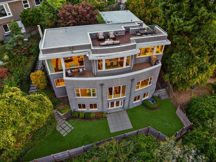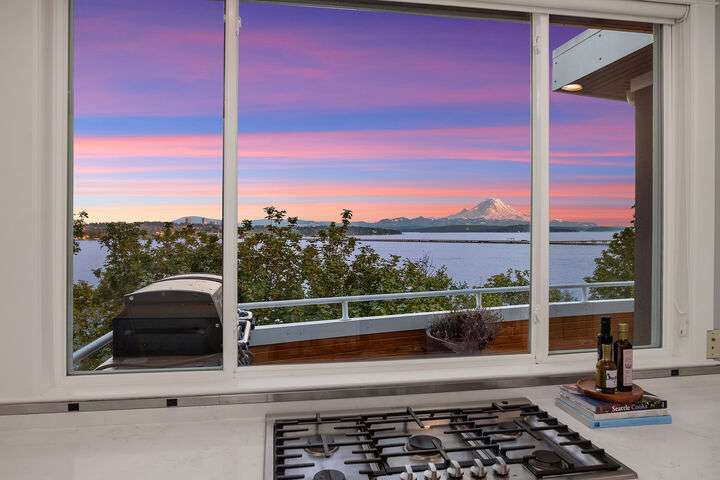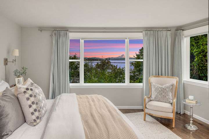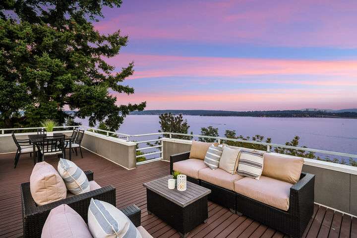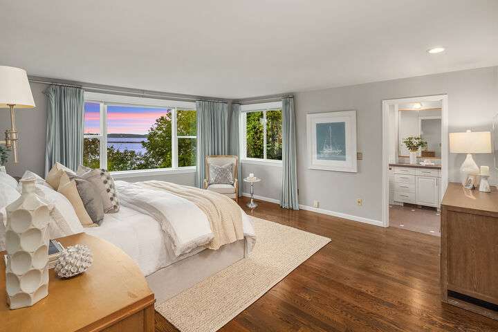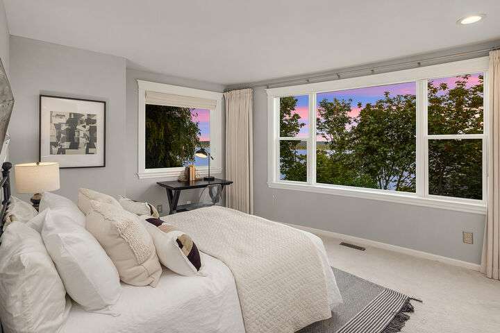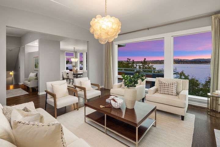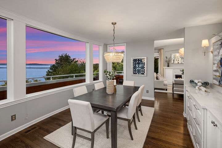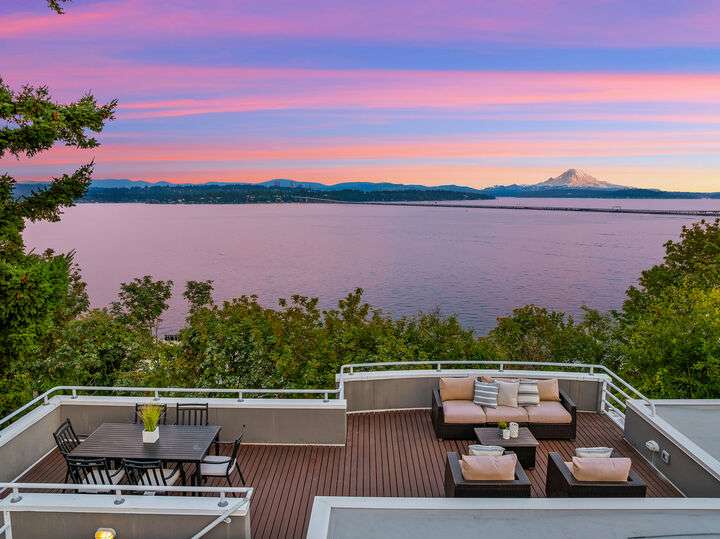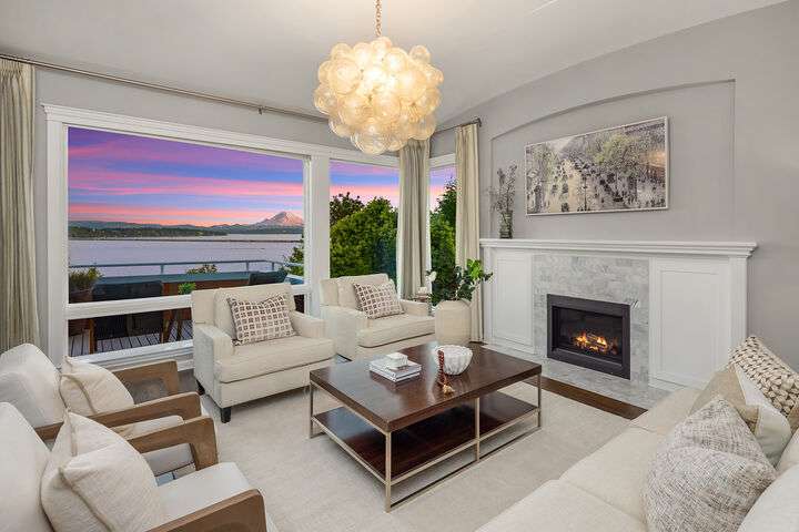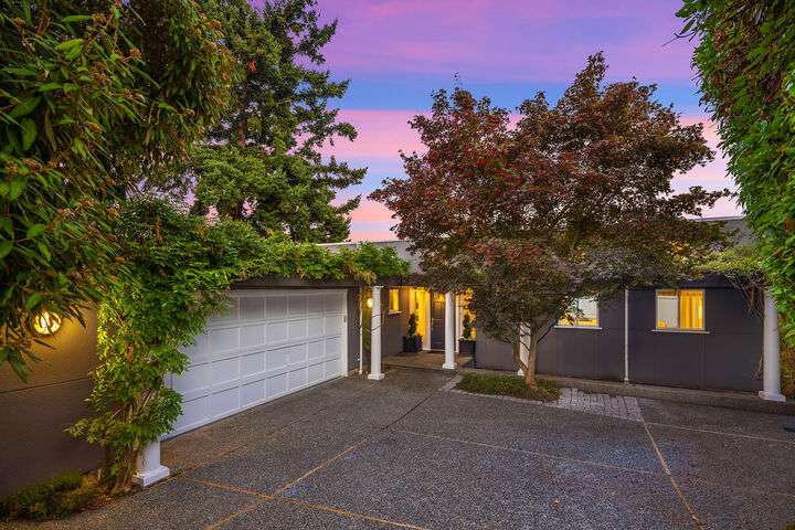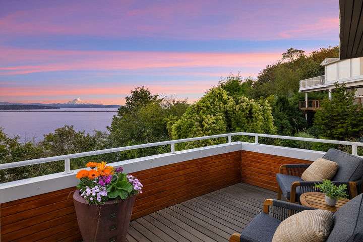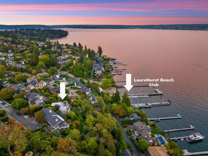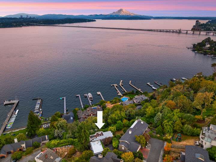 Nestled on a private drive with panoramic views of Mt Rainier and Lake Washington, seamlessly blending serenity and luxury. The expansive main floor features formal areas with updated finishes, flowing into each other and extending to a curved deck—perfect for entertaining. The rooftop deck enhances the experience with endless sky and water views. All bedrooms, including the primary suite, are located on the same floor. The daylight basement provides versatile spaces, ideal for a recreation, media, or gym and opens onto a patio and lawn. A 2-car attached garage ensures convenience, and the nearby beach club adds extra amenities. Privacy is paramount, making this home a true retreat in one of Seattle’s most coveted neighborhoods.