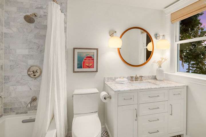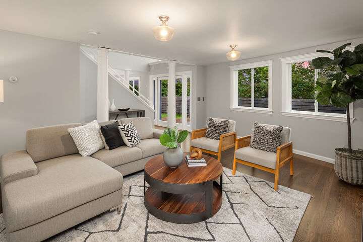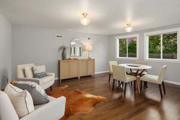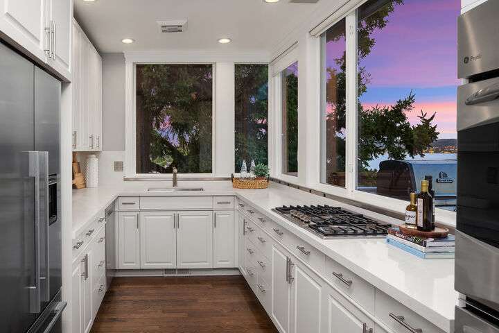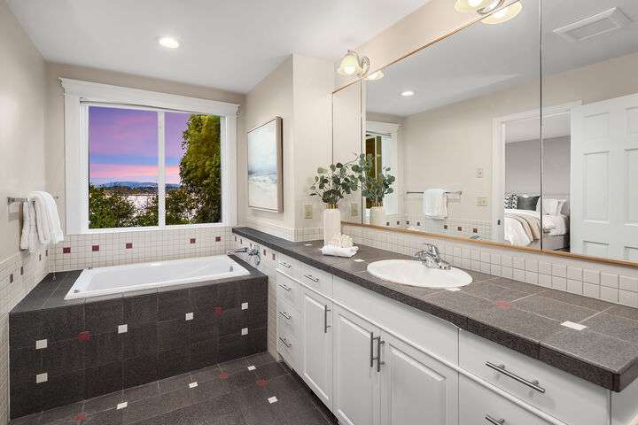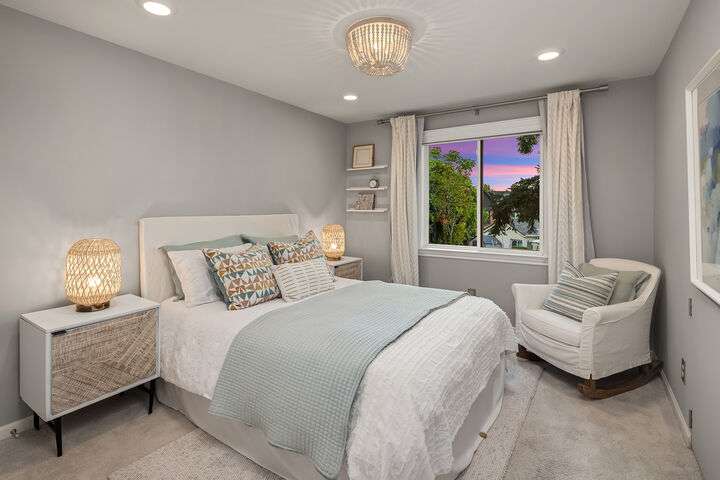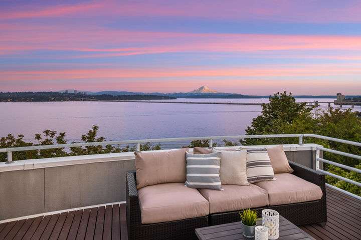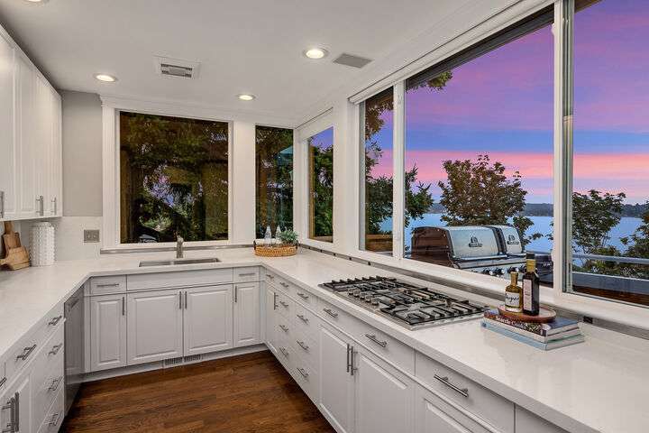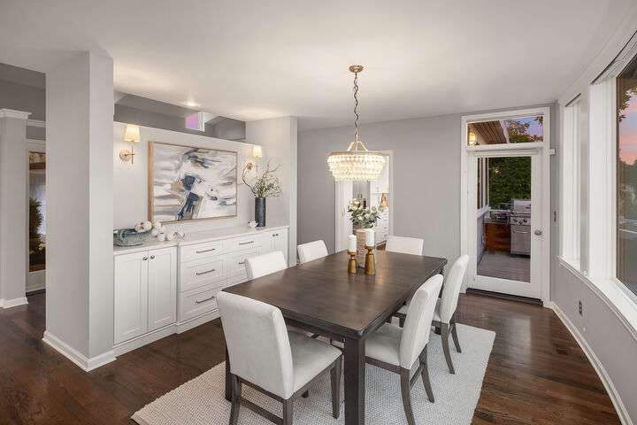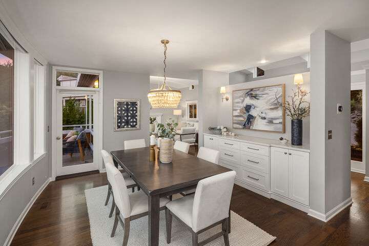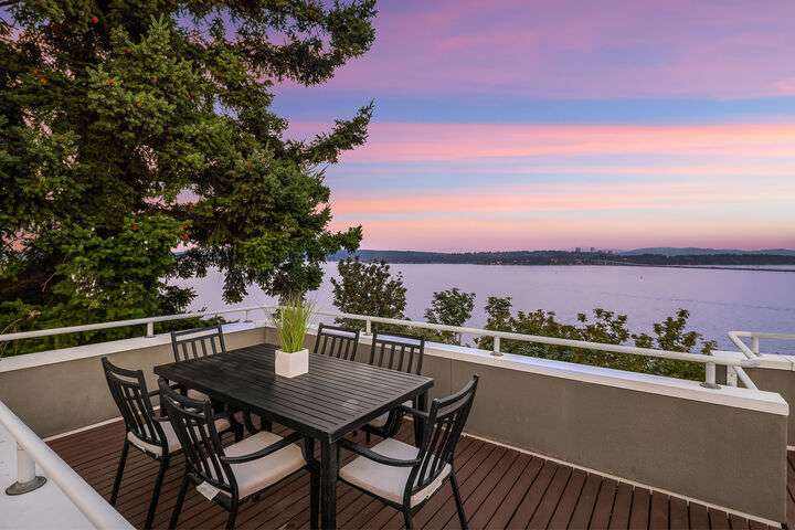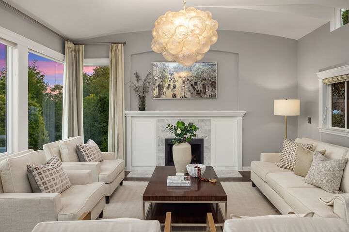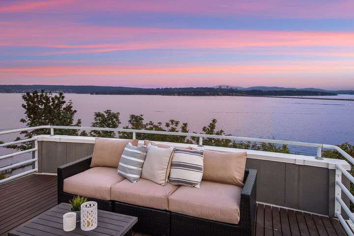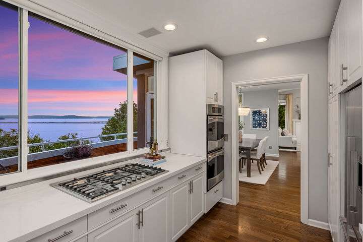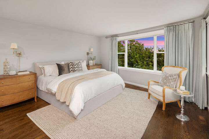 Nestled on a private drive with panoramic views of Mt Rainier and Lake Washington, seamlessly blending serenity and luxury. The expansive main floor features formal areas with updated finishes, flowing into each other and extending to a curved deck—perfect for entertaining. The rooftop deck enhances the experience with endless sky and water views. All bedrooms, including the primary suite, are located on the same floor. The daylight basement provides versatile spaces, ideal for a recreation, media, or gym and opens onto a patio and lawn. A 2-car attached garage ensures convenience, and the nearby beach club adds extra amenities. Privacy is paramount, making this home a true retreat in one of Seattle’s most coveted neighborhoods.
