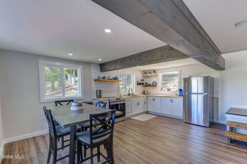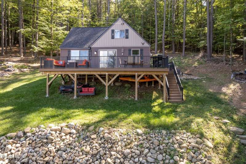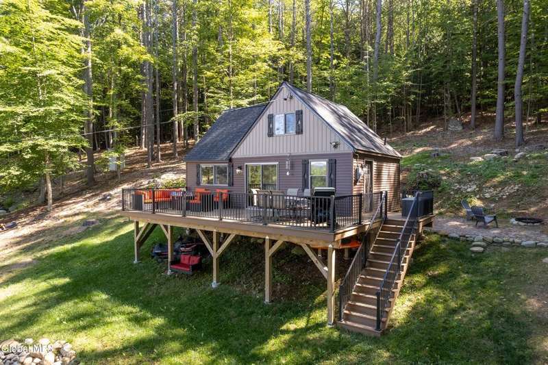 Escape to the peaceful Adirondack community of Edinburg with this charming 736 sq ft, 3-season cottage featuring a 10' lake permit on Great Sacandaga Lake-offering a perfect blend of rustic character and modern upgrades.Step inside to an open-concept layout featuring a cozy bedroom plus a sleeping loft, and a full bath. Recent renovations provide peace of mind and comfort, including new vinyl siding, luxury vinyl plank flooring, thermopane windows, a drilled well, septic system, plumbing, upgraded electric, and a new asphalt shingle roof. The home is well-insulated with spray foam beneath the piers, making it efficient for year-round living.Outdoors, enjoy Adirondack evenings around the firepit or relax on the expansive Trex deck with lake views. Just a short walk (6/10 mile) brings you to the Great Sacandaga Lake, where you'll find your own 10' lake permit and access to a sandy beach-ideal for swimming, boating, and soaking up summer days.If you're looking for a vacation retreat with lake access and is move-in ready, this updated cottage delivers the perfect Adirondack lifestyle. Winterize for year round enjoyment. Don't miss out on this one-schedule a private tour today!