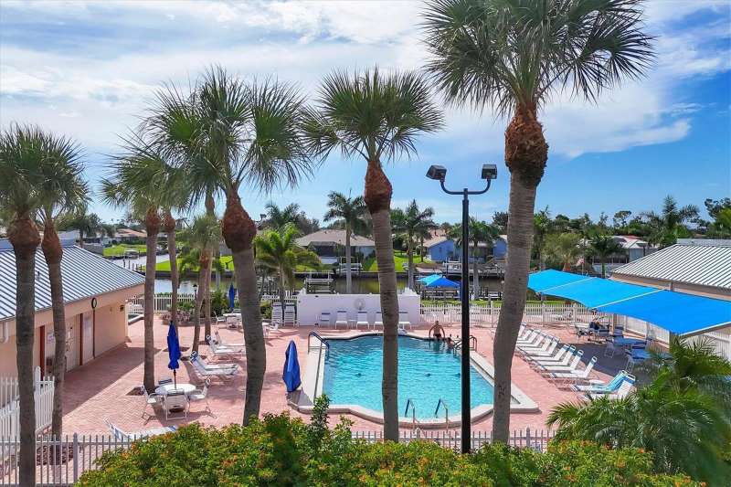 Carefree living in a gated community is this spacious home with a pond view. Located in a 55+ community with access to the intracoastal waterway and Gulf. A boat slip can be obtained if available for a fee. Enjoy the many amenities this community has to offer that includes a heated pool and spa, exercise room, tennis courts and club house. The boat club and storage options available. Extra-large Lanai and attached workshop complete with tools, furniture and furnishings to remain just come and start enjoying. Some staging items are not included. The open floor plan includes a large island/breakfast bar great for entertaining or perfect for the cook, built-in China Cabinets, Large laundry room with storage. Seller is giving a $300 credit for flooring in the Lanai to be replaced. Ideally located near Beaches, Restaurants ,farmers market in season on well-known Dear Borne Street. Come tour this lovely home.