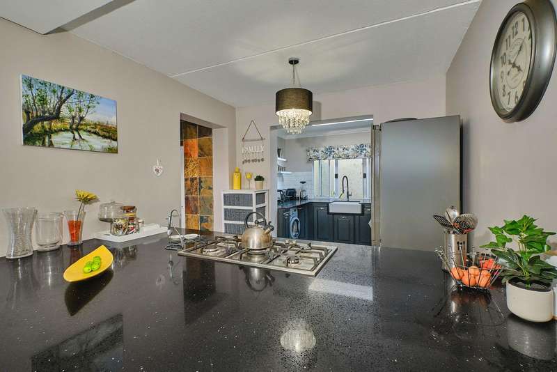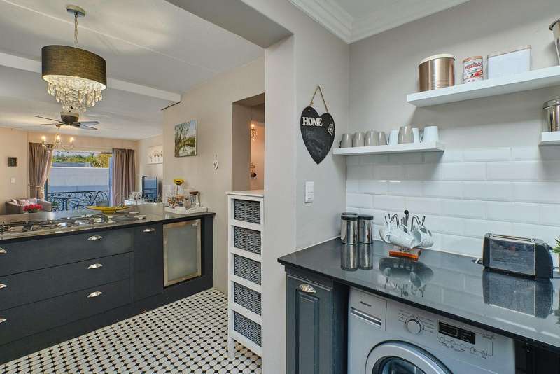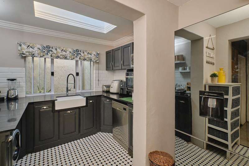 As you step inside, you're greeted by sleek, modern flooring that sets the tone for the contemporary design throughout the home. The open-plan living space is bathed in natural light, creating an inviting and airy atmosphere. This area flows effortlessly into the heart of the home - the fully renovated kitchen, which is both stylish and functional. The kitchen features sleek granite countertops, a state of the art five burner gas hob and a separate scullery that offers ample space for all your appliances and storage needs.