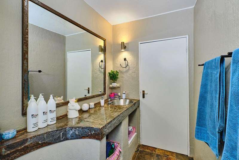 The open concept design extends to the outdoor living area where you'll find a private oasis perfect for entertaining. The outdoor space includes a sparkling pool, ideal for cooling off during hot summer days, and a custom built braai pit, where you can host braais and social gatherings year round. Whether you're hosting friends or spending quality time with family, this space is designed for relaxation and enjoyment.