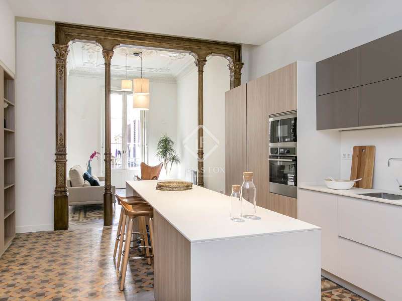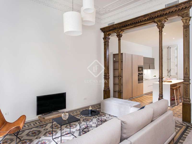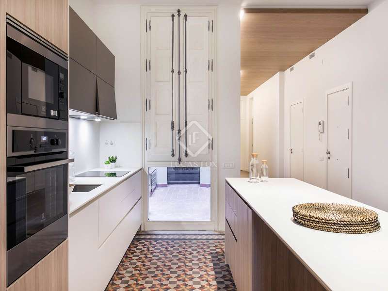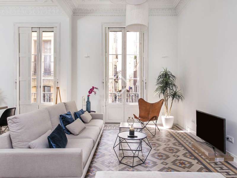 Located in a stunning and well-preserved historical building, this newly renovated apartment combines high-end modern finishes with exquisite period features, offering a truly unique living experience. With 153 m² of space, the property is thoughtfully laid out, creating distinct day and night areas. The open-plan living, dining, and kitchen area enjoys abundant natural light, thanks to large windows and two balconies overlooking the street. This area also includes a private 20 m² terrace, a rare find in the heart of the Old Town. The night area boasts three double bedrooms, two with en-suite bathrooms, along with an 8 m² patio connected to the bedrooms. Stunning period details, like mosaic floor tiles, exposed wooden beams, and intricate ceiling mouldings, enhance the apartment’s exclusive atmosphere. This one-of-a-kind property, in an unbeatable Barcelona location, offers a rare chance to own a piece of history with modern luxury and a private terrace, ideal for those seeking a unique and prestigious residence in the city.