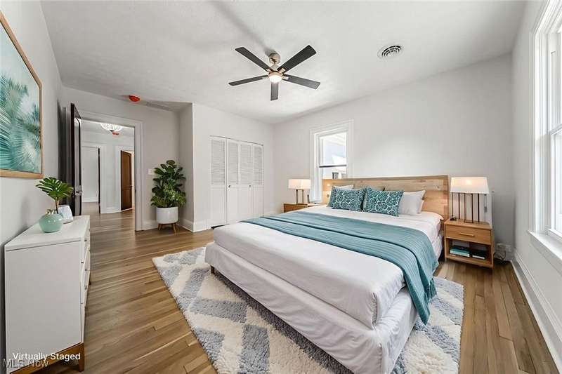 Welcome to this updated spectacular 4,300 sq ft Spanish-style home on Lake Avenue offering 5 bedrooms and 5 bathrooms, just steps from Lake Erie and Edgewater Park and minutes from downtown Cleveland. This stunning home offers the perfect blend of historic charm and modern luxury in one of Cleveland's most desirable locations. As you step through the front porch into the grand foyer, you're immediately greeted by a sweeping double staircase and the warmth of beautifully refinished original hardwood floors that flow throughout the home. The spacious living room opens into a formal dining room with a wet bar that leads seamlessly into a chef's dream kitchen, featuring sleek black cabinetry with brass hardware, a massive quartz waterfall island, exposed brick accents, high-end appliances including a 48" refrigerator, and designer light fixtures that bring the space to life. Upstairs, the second floor offers three spacious bedrooms including a luxurious master suite with a glamour bath and laundry room, plus a charming morning room with sliding doors that open to the private balcony. The third floor provides two additional bedrooms and a full bath, while the finished lower level offers yet another full bath, perfect for guests or extended living. Outside, enjoy multiple outdoor spaces including a welcoming front porch, a side porch, a second-floor balcony, and a newly built circular driveway leading to a three-car attached garage. Huge park like yard perfect for entertaining. Recent updates include a brand-new kitchen, updated all five bathrooms, refurbished hardwood floors, fresh paint throughout, new HVAC system, hot water tank, modern lighting, and new garage with a balcony access. This home is move in ready. Call for your private tour.