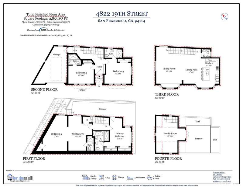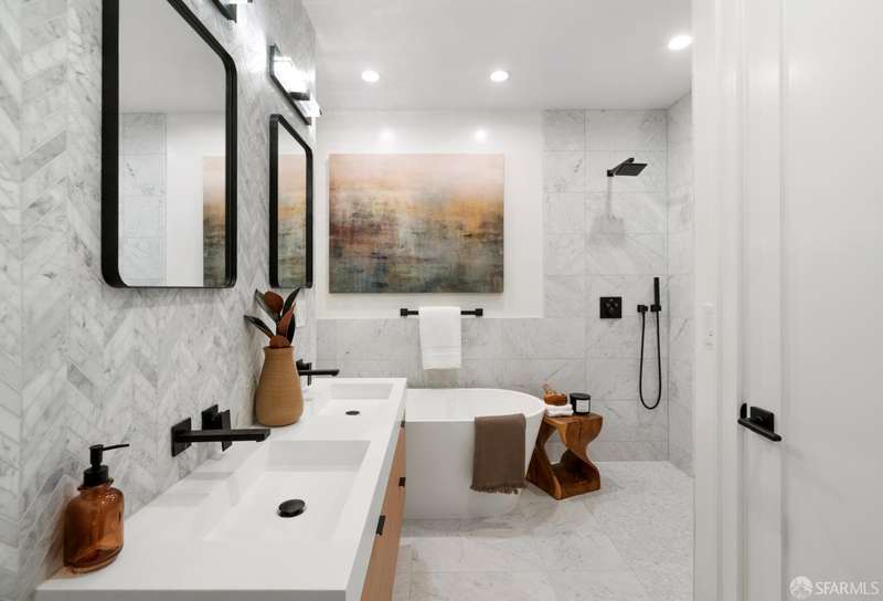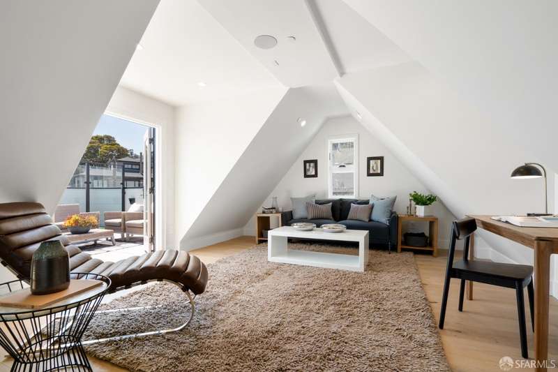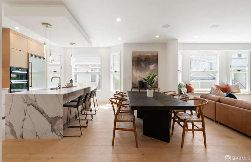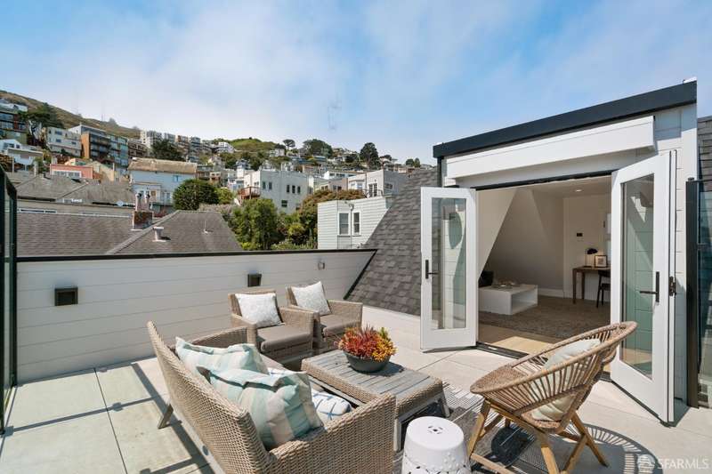 Fantastic new construction in wonderful Castro/Eureka Valley location. The spacious interior includes apx. 2,855 sq.ft. with 4 bedrooms, 4 bathrooms, top-floor media room and fantastic roof-terrace with views of downtown San Francisco and beyond. Each bedroom is spacious with in-suite bathrooms, generous closet space and copious windows; the primary suite is fit for a spa with double vanities, large soaking tub and separate shower. One level above the street, the massive great room opens to a large island kitchen with built-in oven and microwave, gas cooktop, wine refrigerator and Viking refrigerator. Residence includes an oversized 1 car garage, hookups for EV charger, in-ceiling speaker system and much, much more.