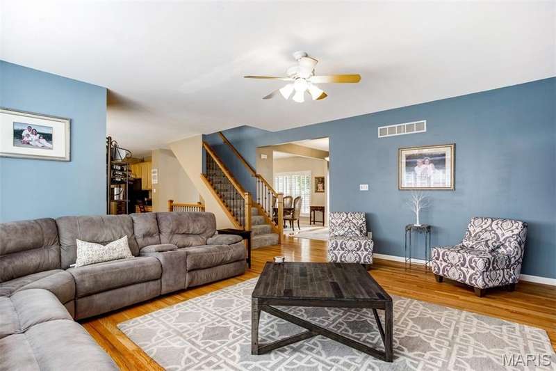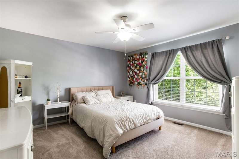 Meticulously maintained and beautifully updated 4 bed/3.5 bath 2 story home located in a quiet cul-de-sac! The main floor offers excellent entertaining space perfectly designed to accommodate every lifestyle. The main level features a stunning kitchen with granite countertops, gas range, stainless steel appliances & spacious breakfast room—ideal for casual meals & morning coffee. The large great room features a gas fireplace, bay window and wood floors. Spacious dining room and home office flank the beautiful entry foyer with gleaming wood floors. An updated half bath adds style and function to the main floor. Upstairs, the expansive primary suite offers a large walk-in closet, a luxurious tub and walk-in shower, as well as 3 more spacious bedrooms, full updated bath & loft area. The finished lower level adds even more versatility with a spacious game/rec room, sleeping area, bar, full updated bath & abundant storage. Special Features: Main Floor Laundry, Plantation Shutters, Three-car garage, new carpeting throughout in 2023, refinished hardwood in 2021, Dual HVAC. Easy access to shopping, restaurants & highways, this home offers the ideal blend of space, style & location