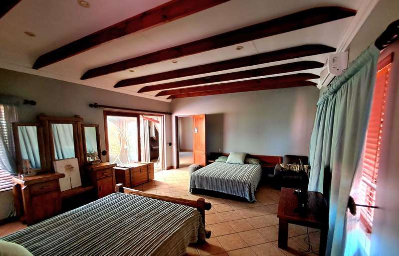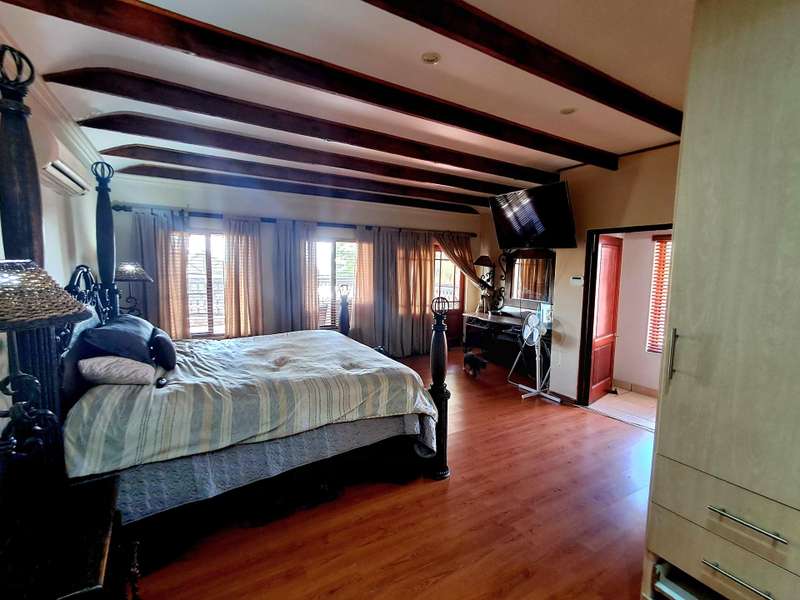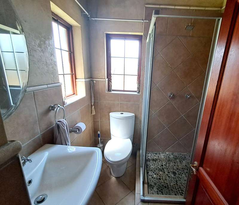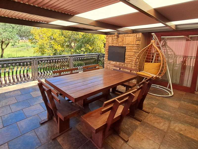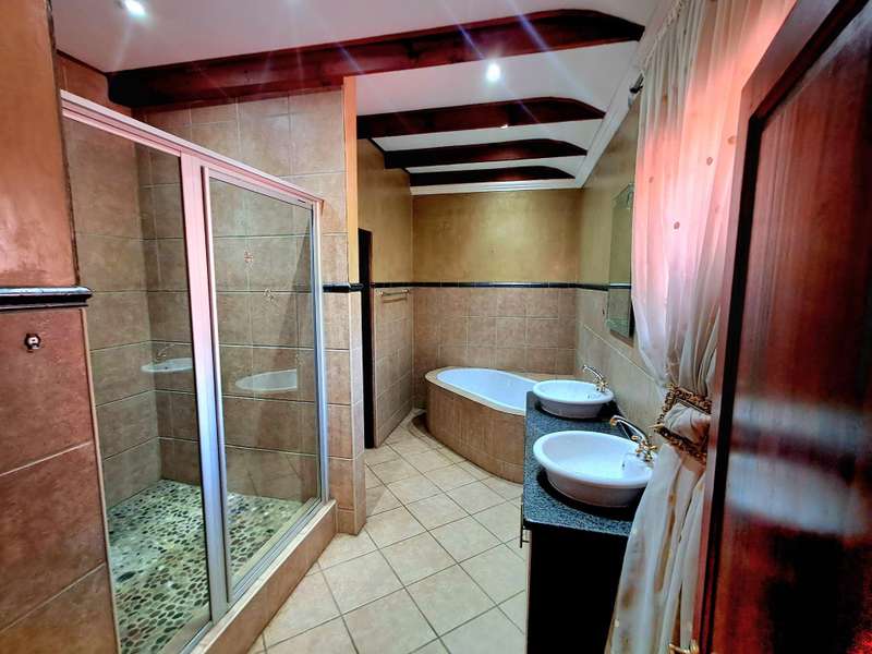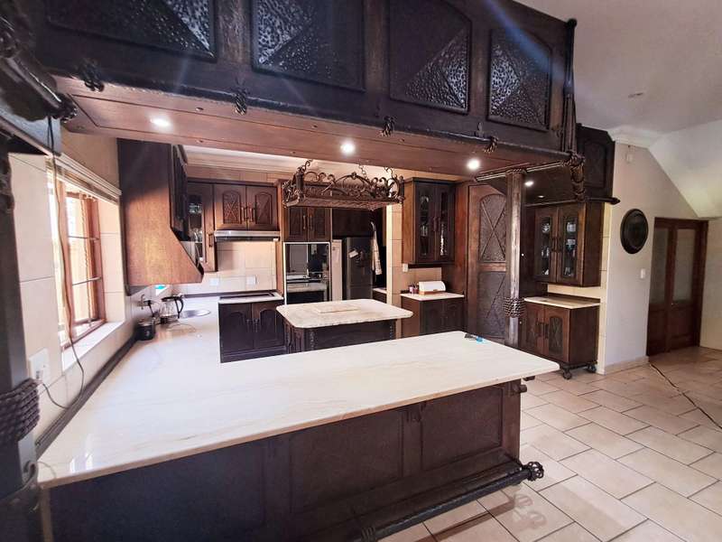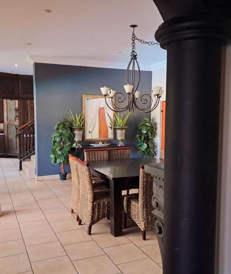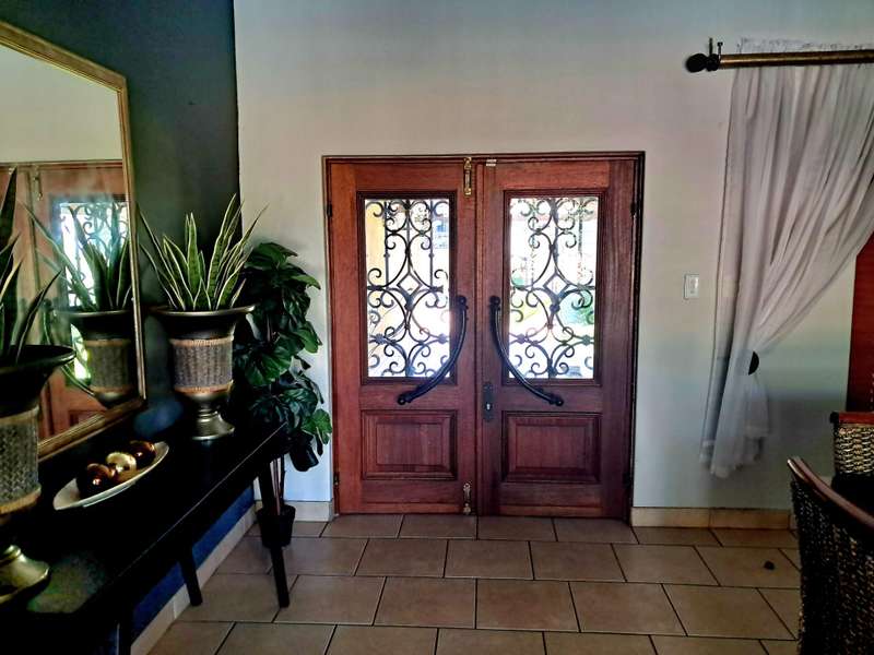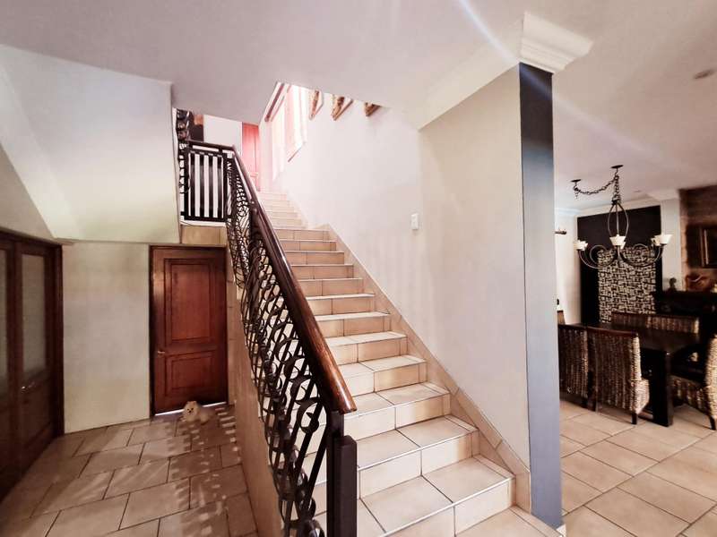 Exquisite House in Kaapzight Place - Luxury and Private Estate!! Well designed Double -Story, Living Areas on different Levels 2 Spacious Bedrooms with En-Suite Bathrooms on 1st Floor Ample Cupboards Laminated Floors Aircon 3rd Bedroom, also En -Suite on the Ground FloorCan be used as a Guest Room or Accommodation for elderly Parents Laminated Cupboards Ample Cupboards Aircon Stoep, Built in Braai with a view over the Pool and Boma Area TV Room with Guest Toilet Covered Stoep / Recreation Area with a View on top of Garage Formal Lounge Laminated Floors Aircon Spacious Dining Room with Fire Place - Tiles Stoep with Bar Counter leading to the Pool and secured by Decorative Wrought Iron Security Gates Entrance Hall leading to the Kitchen, Small Wine Cellar and Stair case to the 1st Floor Open Plan Kitchen with Marble Tops, Centrally placed Working Top, Eye Level Oven and Extractor Fan Plenty Cupboards Dark Wood and Wrought Iron Theme, - also Complement other Areas throughout the House Scullery Pantry Storage under the Stair case Domestic Accommodation Well Developed Garden Pool (with water jets) Well Planned Boma with Fire Place Irrigation Double Garage - Automated Door View By Appointment Only!!