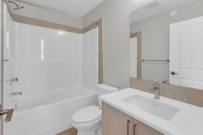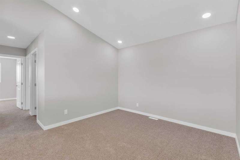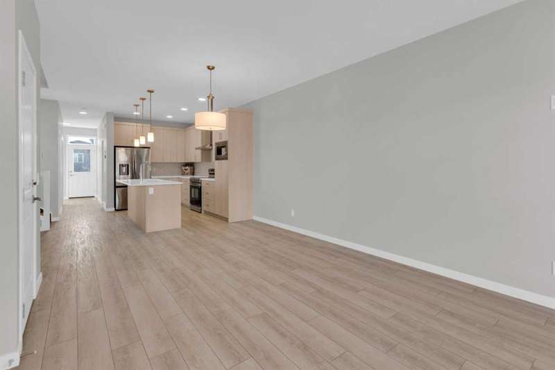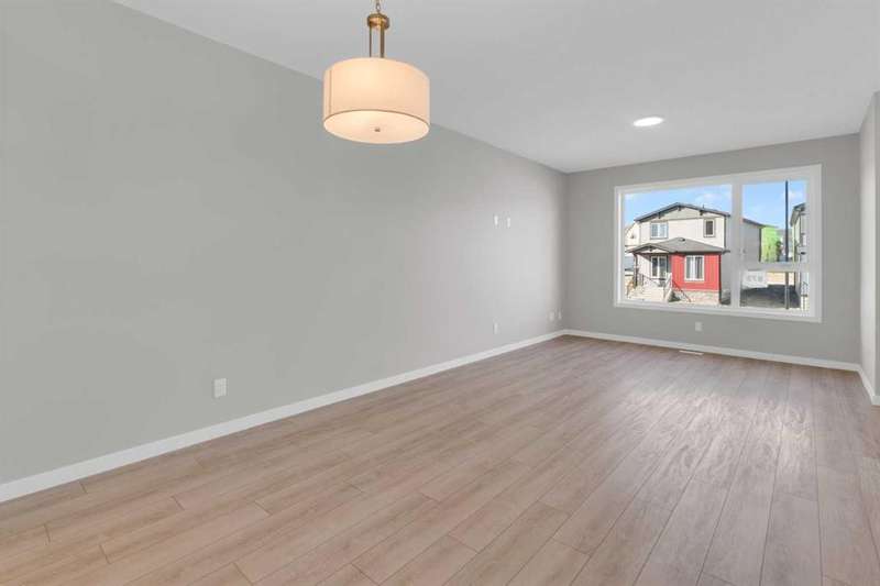 Introducing the COHEN: an amazing, BRAND NEW attached home by EXCEL HOMES offering 1748 SF above grade with a FULLY DEVELOPED, LEGAL SUITE, W/SEPARATE ENTRANCE, TWO BEDROOMS, TWO BATHROOMS AND FULL KITCHEN. Nestled in the vibrant Northeast community of Livingston. Step into a life of luxury and convenience with this stunning residence, where every detail has been meticulously crafted for comfort and style. Enjoy the benefits of living in an established neighborhood that brings a plethora of amenities right to your doorstep, along with swift access to major highways. The COHEN offers a sprawling 1748 square feet of thoughtfully designed living space, perfect for both families and entertaining. The open floor plan, complemented by neutral designer tones, creates a welcoming atmosphere that is both elegant and comfortable. The chef-quality kitchen stands as the heart of the home, equipped with ceiling-height cabinets, two banks of pot/pan drawers, and upgraded stainless steel appliances, including chimney fan, and built-in microwave. The expansive engineered stone countertops, a large island with seating, and a convenient pantry make it a dream kitchen for those who love to cook and entertain. The main floor also features versatile luxury vinyl plank flooring On the main floor you'll also find a FLEX ROOM that can be used as a home office, guest bedroom or playroom. and half bath for convenience.. Ascend to the second level where leisure meets luxury in the large central bonus room featuring vaulted ceilings & pot lighting — ideal for movie nights and family gatherings. The primary bedroom is a true retreat, boasting a walk-in closet and a spa-like 4 Pce ensuite with dual sinks, double wide shower & stone vanity tops. Additionally, two more generously sized bedrooms provide ample space and easy access to the main bathroom. The convenience continues with a laundry room strategically located on the same floor. The possibilities extend into the FULLY DEVELOPED basement - SEPERATE SIDE ENTRY to your LEGAL TWO BEDROOM / TWO BATHROOM BASEMENT SUITE WITH FULL APPLANCE PACKAGE. Your suite is built to upstairs standards & offers TWO bedrooms, TWO FULL BATHS, full kitchen w/lots of storage cabinets, SS appliances, PRIVATE LAUNDRY, vinyl plank flooring. Step outside to a southeast-facing backyard that's perfect for relaxation and outdoor activities & your deck is already built. Don't miss the chance to own this never-lived-in gem with quick possession available. Experience the blend of luxury, comfort, and convenience in Livingston—welcome to your new dream home at the COHEN. This home will include front & back yard sod and a 20x20 gravel parking pad. Also includes complete interior sprinkler system to main and upper floors! There is also a gas line to the bbq at the rear. With over 35 years of experience, more than 15,000 homes built, and 75 awards for design and industry excellence, Excel Homes continues to deliver quality, innovation, and peace of mind