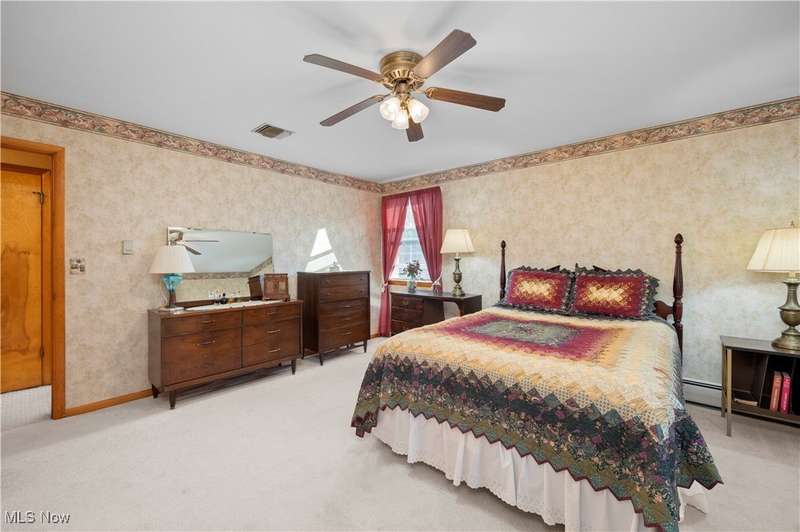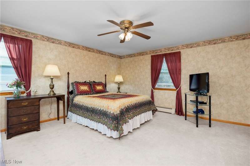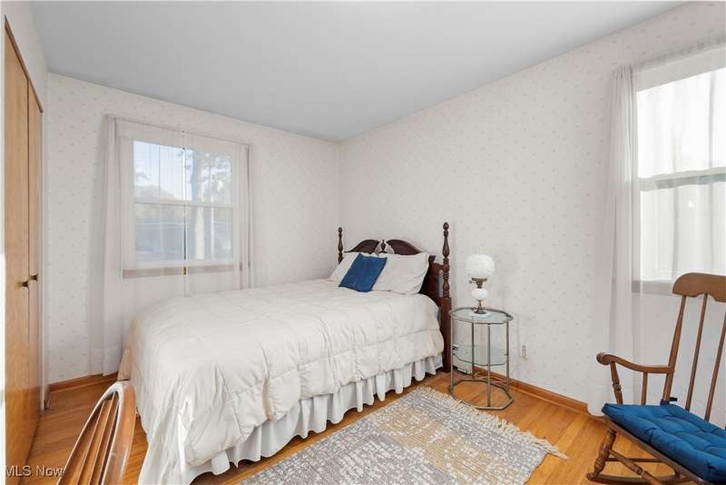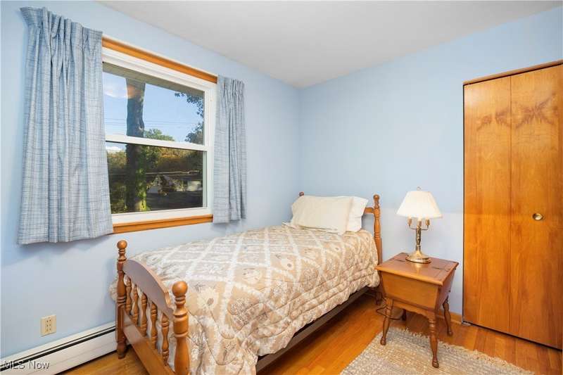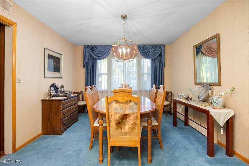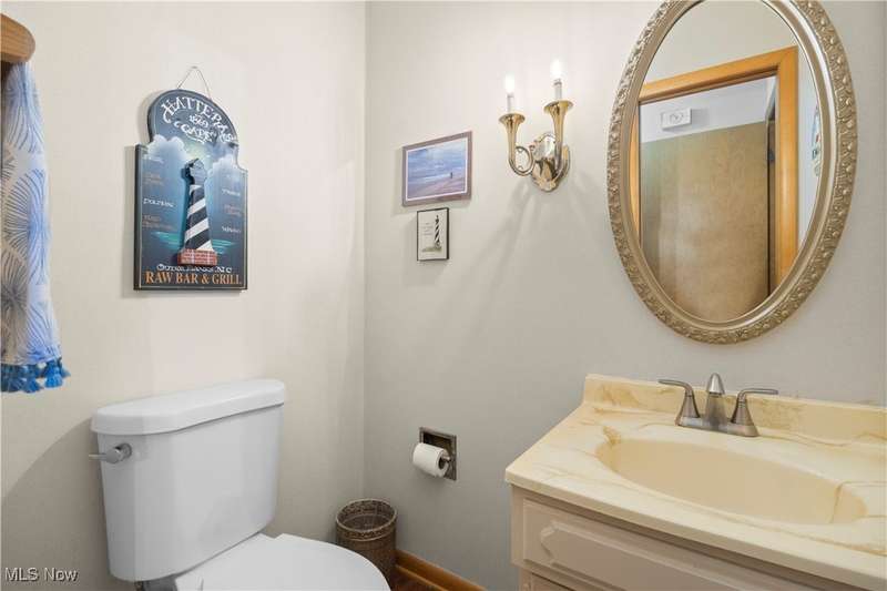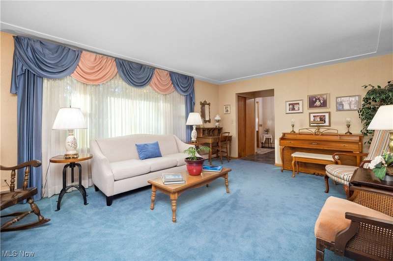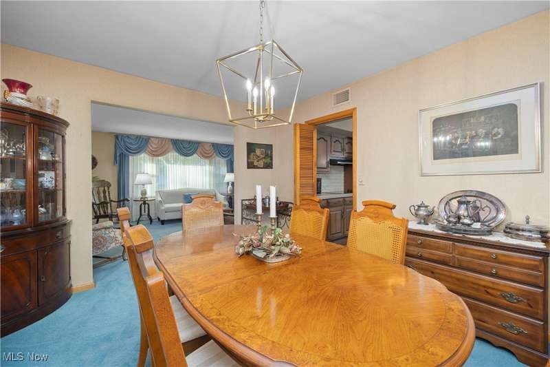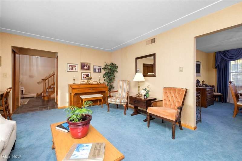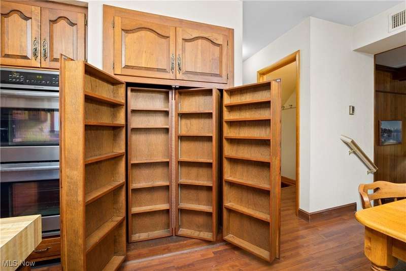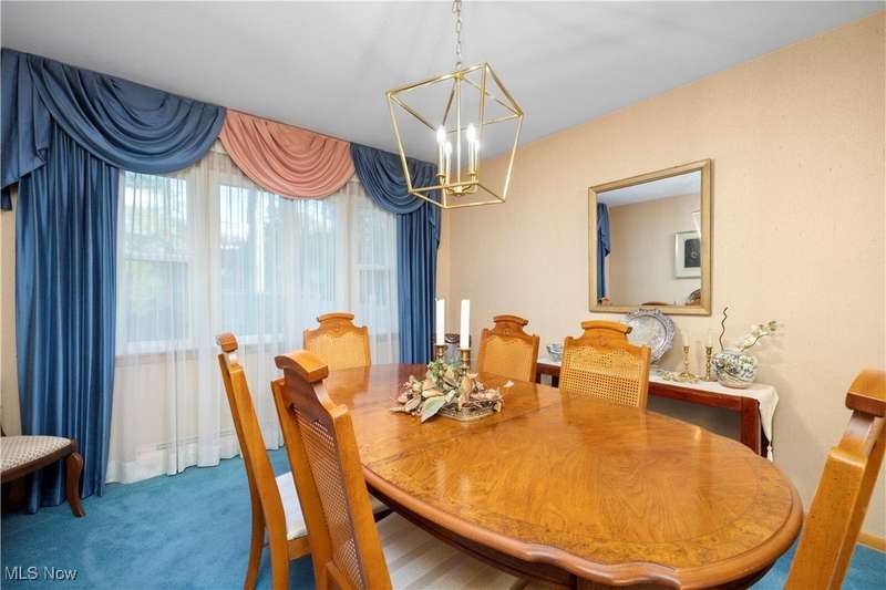 A lovely home. You'll enjoy the location nestled just around the corner from schools, parks/rec, walking trails and more! Welcoming exterior with pretty sandstone accents, and a covered front porch. Enter a spotless interior that gleams with long term pride of ownership! Foyer entry accented with a natural wood banister on the staircase and a unique front door with sidelite. Spacious living room and dining rooms! The kitchen is loaded with charm and practicality. It boasts a double wall oven, unique pantry with added storage and a center island with butcher block top! Enjoy cozying up in the family room complete with a beautiful stone fireplace and built in shelving! The wood paneling and beamed ceiling add rustic appeal and coziness. FOUR upstairs bedrooms upstairs and two full baths. The Primary bedroom has a private full bathroom. Vinyl siding and replacement windows. Beautiful backyard setting on a 70x140 homesite tucked under mature trees and a spacious deck for outdoor relaxation. There is a partially finished basement with carpeted bonus room and a retro bar/lounge area! Lots of built in storage in the laundry space. This is a home that radiates with positive energy and comfort!