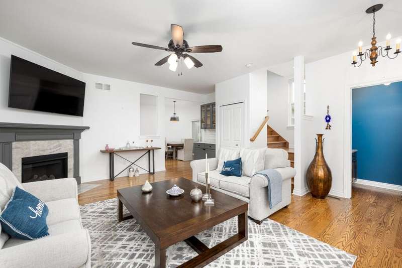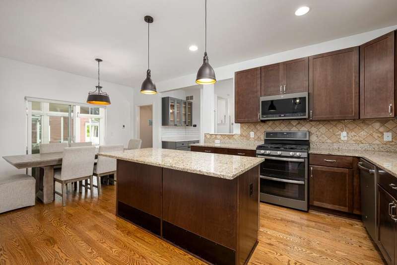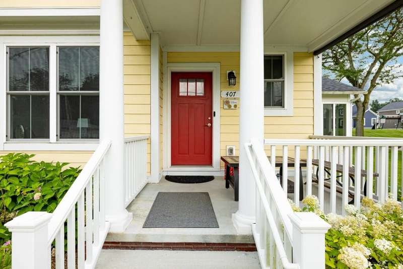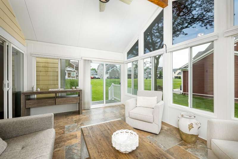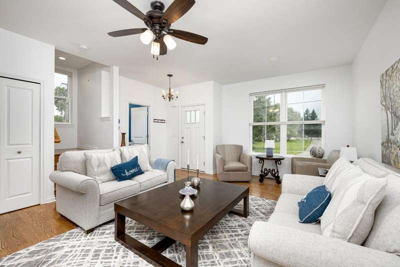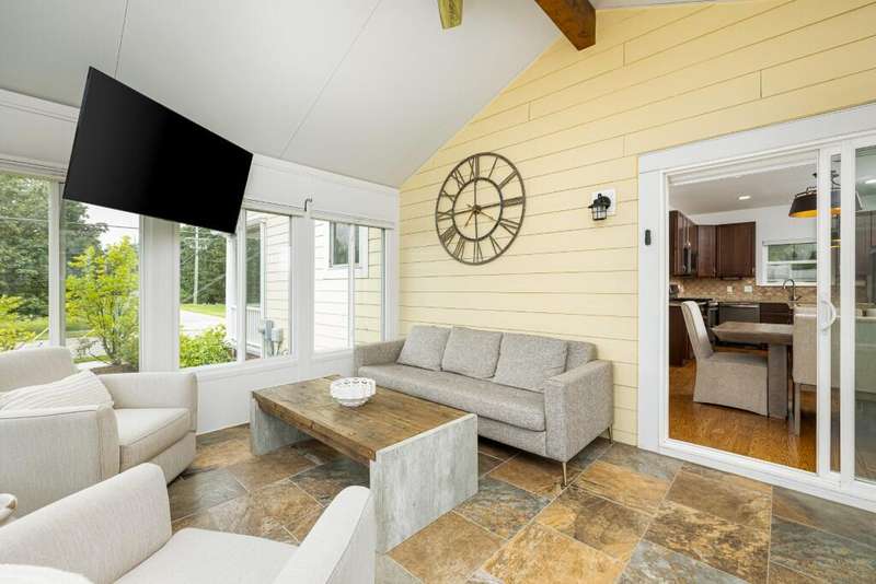 Modern Farmhouse perfection, built in 2018 - better than new, with thoughtful upgrades throughout! Soaring 9' ceilings on the main level, a finished basement, abundant natural light, and an efficient floor plan create a sense of space and comfort beyond the square footage. The low-maintenance exterior and pristine condition will appeal to all. A year-round sunroom with radiant heat, plus a main-floor coffee bar, add everyday luxury. The kitchen is a chef's delight, featuring a central island, stainless steel appliances, and a seamless connection to the home's open living spaces. Solid wood floors flow through the main and upper levels, where you'll find three bedrooms and a laundry area with full-sized appliances. The expansive primary suite features a vaulted ceiling, walk-in closet, dual-sink bath, and a large glass-enclosed shower with bench seating. The basement offers a fourth bedroom with egress, a full radiant-heated bath, and a sitting room - perfect for hosting, hobbies, or private relaxation. Oversized garage with ample storage, and strong energy efficiency of the house as a whole. All just steps from the river, Mill Pond Park, and downtown shops - come experience the perfect blend of style, comfort, and location.