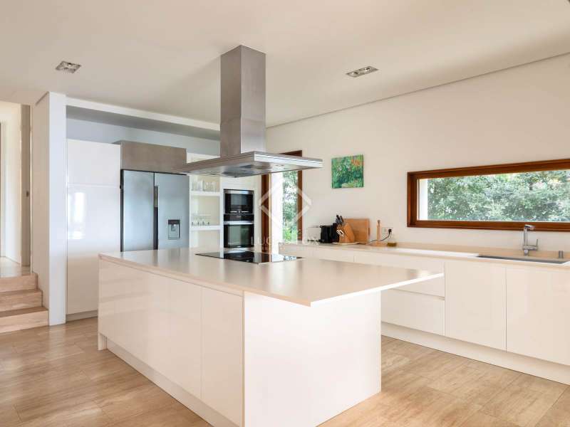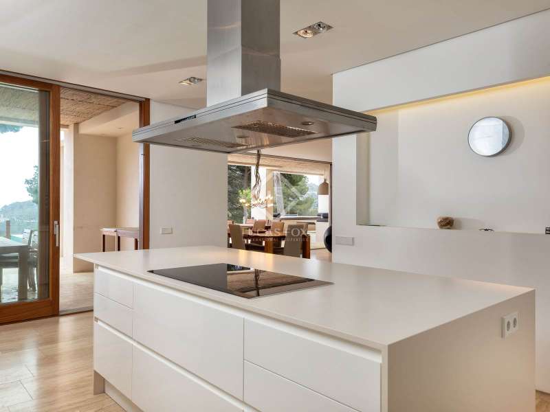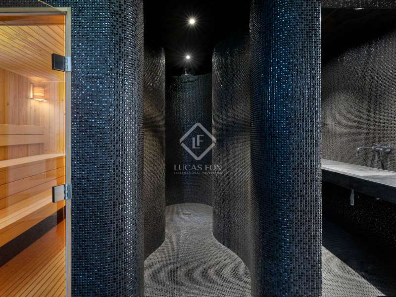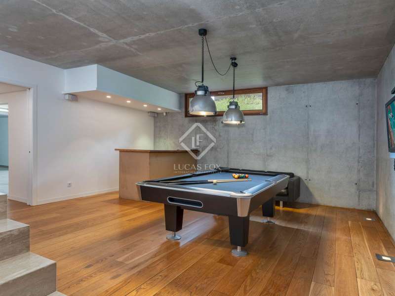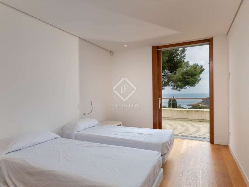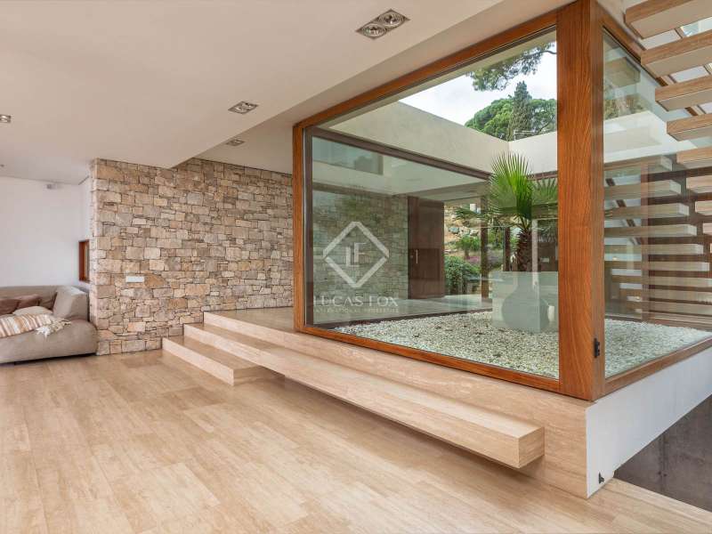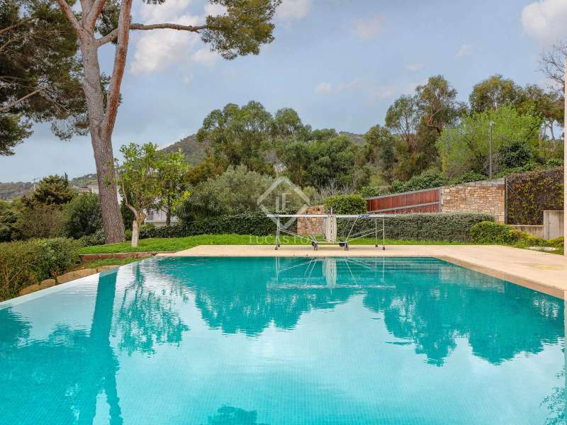 Fabulous house in the sought-after area of Aiguablava, one of the most attractive locations on the Costa Brava. This property was designed and built by a renowned local architect and has been featured in several national architecture publications. Located within walking distance of the beach, the Camino de Ronda, and various amenities, the house sits on a gently sloping plot, maximizing the use of space and adding a sense of openness and comfort. On a 1,945 m² plot, this spectacular home offers four bedrooms, with the option of a fifth for service quarters. From the very first moment, the house impresses with its majestic entrance, where opening the main door reveals a spectacular view of the sea and the surrounding pine forest. The ground floor is centered around an elegant glass-enclosed interior patio, which not only creates a striking aesthetic impact but also floods the house with natural light, enhancing the feeling of transparency and connection with the surroundings. On this level, we find a spacious living-dining area with a fireplace, seamlessly integrated with the outdoor area, featuring a cozy chill-out space with an outdoor fireplace and a magnificent pool. From the living room, we pass through the indoor dining area, which connects to a semi-open kitchen that also links to the outdoor dining space and barbecue area. Ascending an elegant staircase that wraps around the interior patio, we reach the sleeping quarters, consisting of four bedrooms. The master suite features a spacious bedroom with a walk-in closet, access to a terrace with breathtaking views of the Mediterranean, and a full bathroom with a bathtub. A second suite, slightly smaller, includes a full bathroom with a shower and direct access to the terrace. Two additional double bedrooms—one with direct access to the terrace and sea views, and the other overlooking the garden—share a full bathroom with a shower. The semi-basement level is designed for leisure and relaxation, featuring a billiard room, a bar, a wine cellar, and a spectacular spa with a sauna, hammam, and jacuzzi. This level also has direct access to the exterior, perfect for completing a spa session with a refreshing dip in the pool. Additionally, this floor includes a laundry area, a garage with space for two cars and a motorcycle, and an optional service bedroom. The garden, in perfect harmony with the house, is filled with native vegetation, fruit trees, and flowers, creating a serene and enchanting environment. This extraordinary residence was designed and executed by the prestigious architectural firm Cobo del Arco, ensuring exclusive design and top-quality construction.