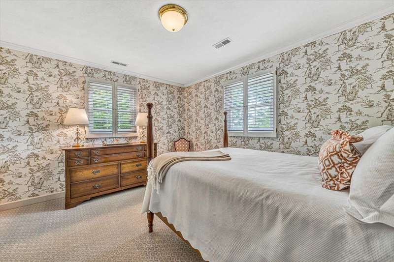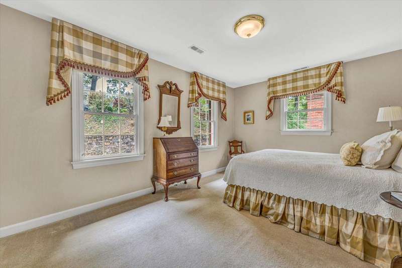 Nestled in a serene So Rke cul-de-sac, this impeccably maintained custom brick colonial offers the perfect blend of privacy and luxury. Step inside to discover a light-filled, open layout that seamlessly integrates both comfort and style. Windows throughout invite natural light and provide breathtaking mountain and city views, creating a peaceful, airy atmosphere. The home has been thoughtfully updated with a brand-new roof and gutters, ensuring peace of mind for years to come. Each room is designed to maximize space and function, from the expansive living areas to the cozy, private bedrooms, including a master suite that offers a comfortable, private sitting area. Outside, enjoy the tranquility of a private setting, including a large deck, ideal for relaxing or entertaining against a