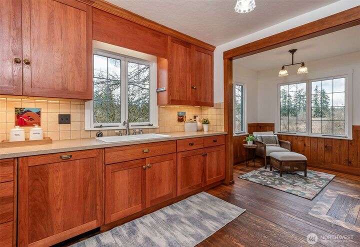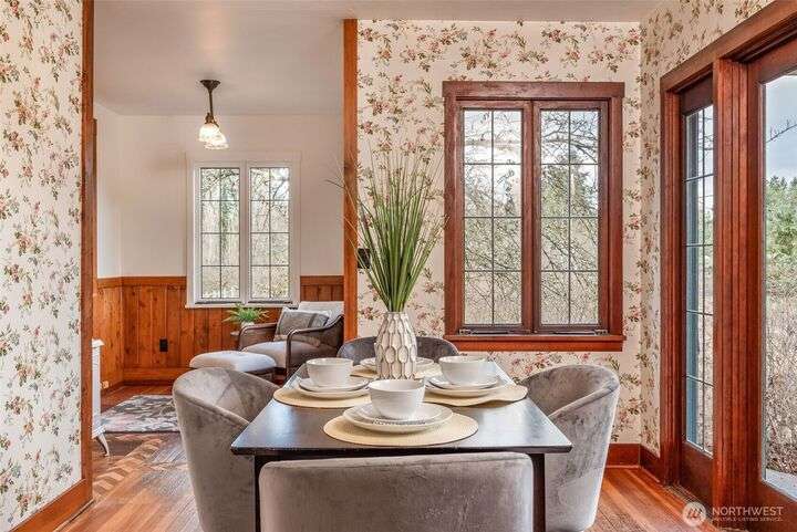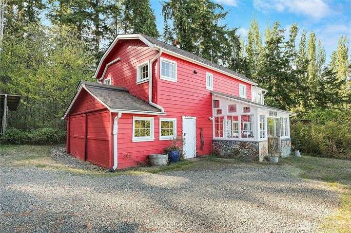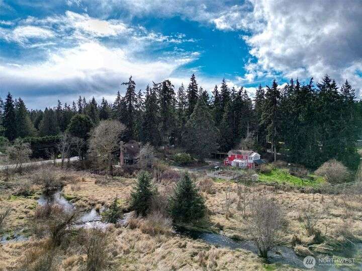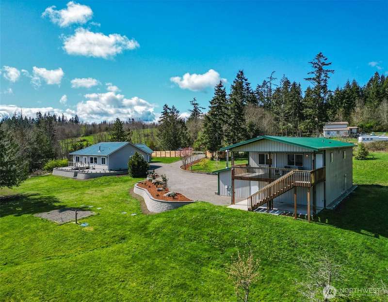 Bordering Chimacum Salmon Creek & protected wetlands, this rare property provides 11.2 acres of wildlife views. Over half of the acreage could be used for future expansion. Land offers two homes with rural charm and income potential. The centerpiece is a classic 1928 farmhouse (3BR/1.5BA) that combines timeless character with thoughtful modern updates. ADU/Shop is 1,500 sq ft, ideal for a guesthouse, home office, or rental property which adds flexibility & income-generating potential. The landscaped grounds are adorned with gardens, fruit trees, flowering plants, & two small barns suitable for livestock. A soils certificate confirms well-draining land, offering peace of mind regarding flood risk. This is a gardener/farmers paradise!
