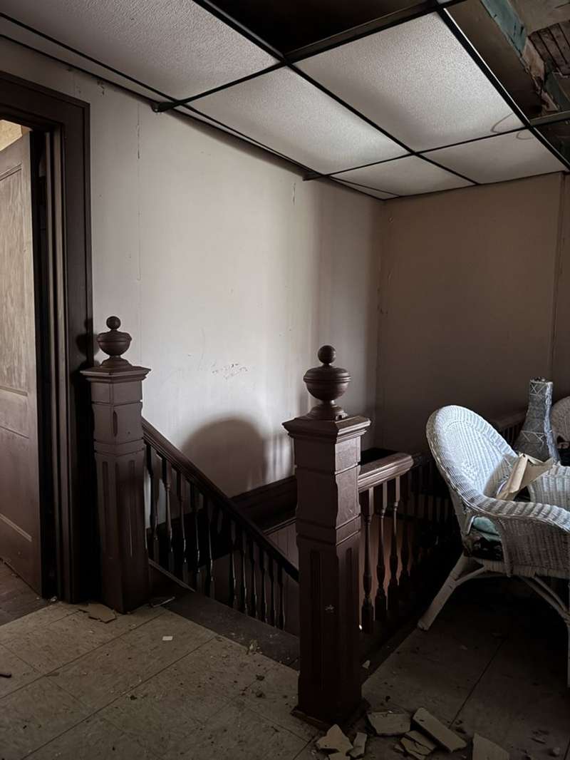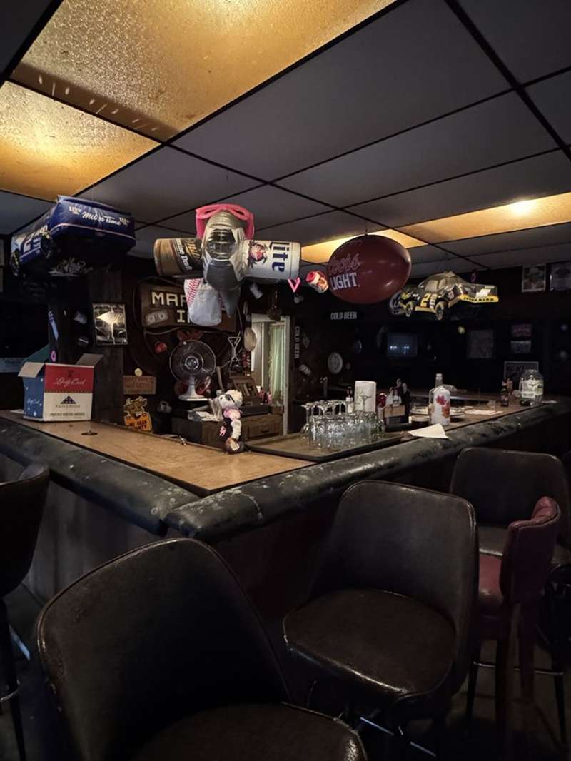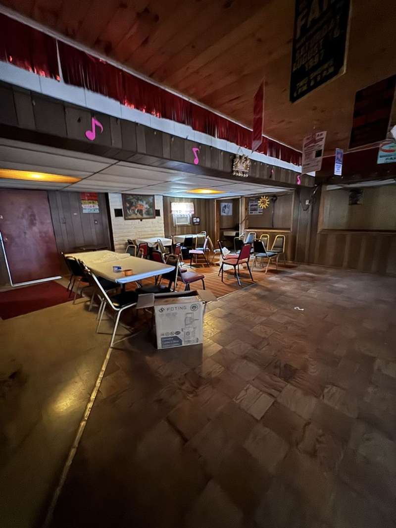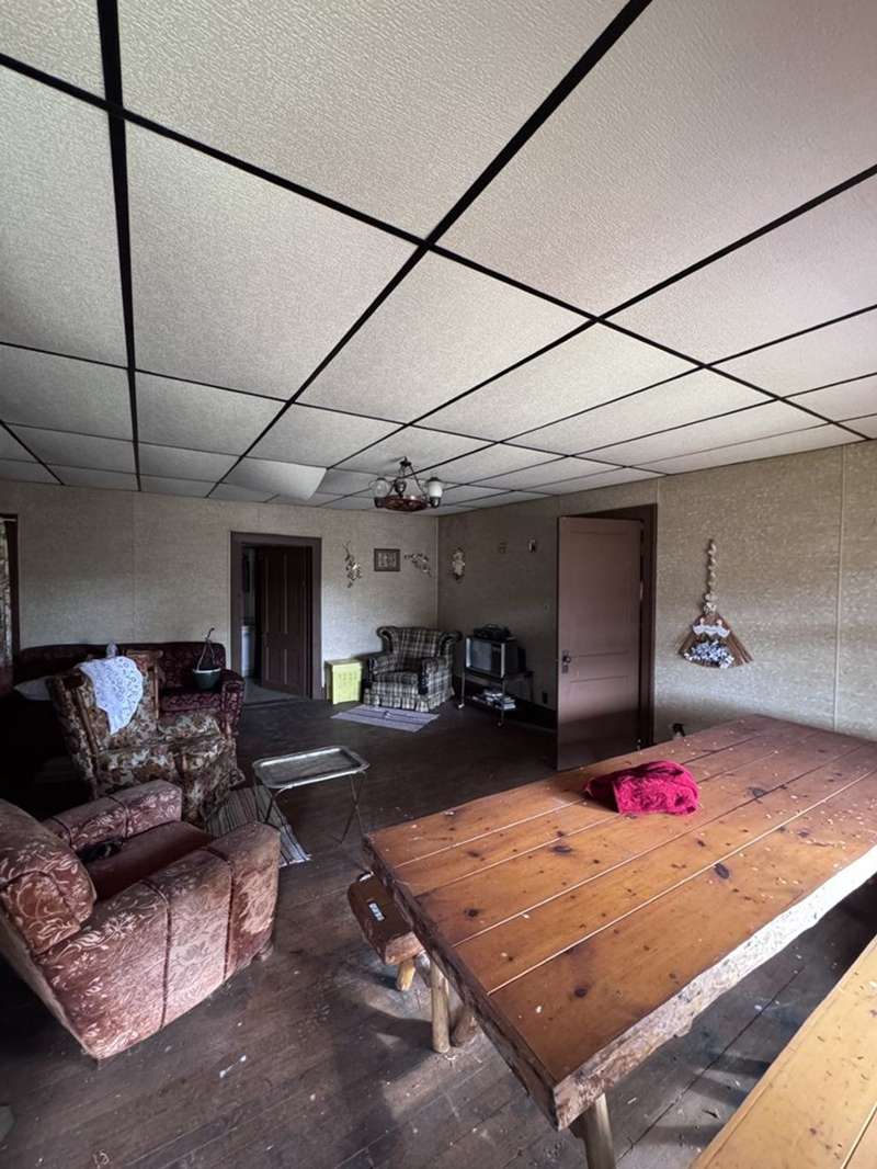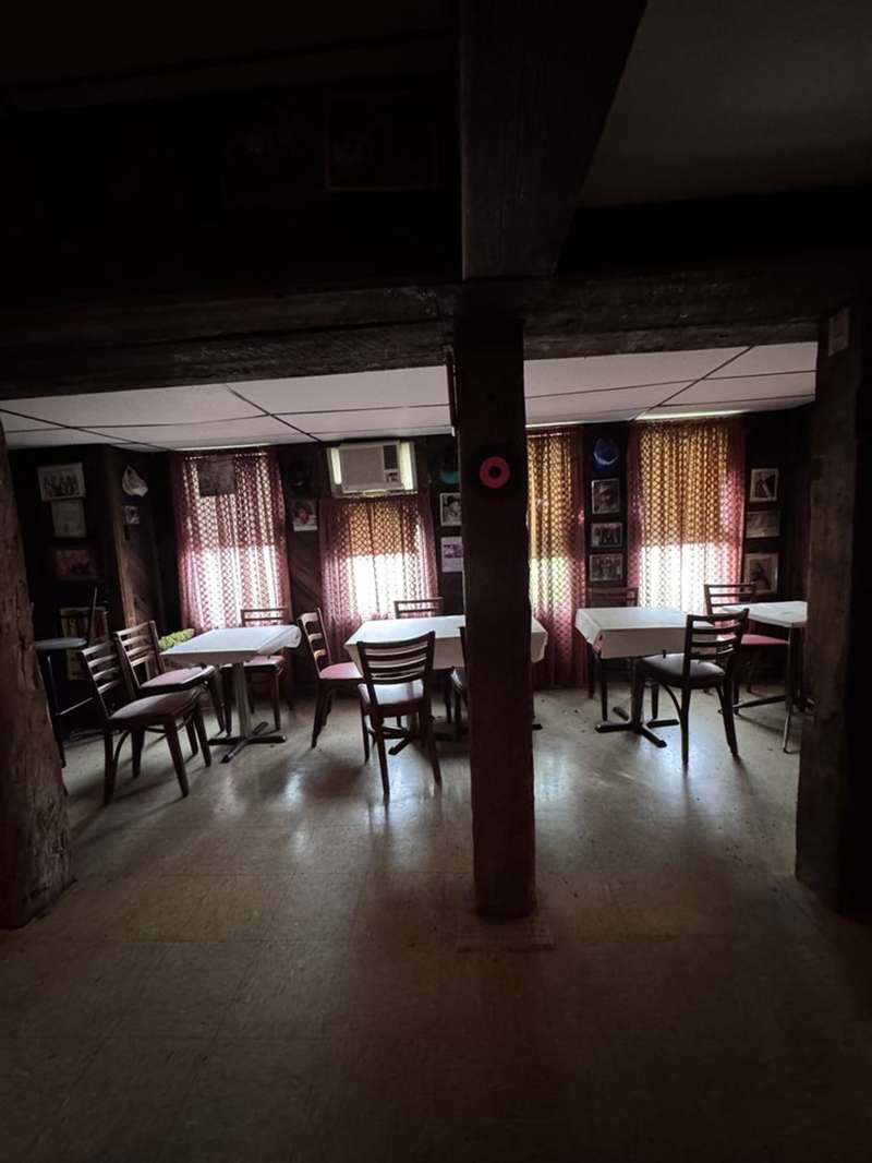 Bring this home back, so much potential for whatever buyers want to achieve. This was a bar in the past with a horseshoe bar. All contents/appliances are included in the sale. Large dance floor and three half baths on the first level. On the right side of the second level is a master suite with a full bathroom and living area, leading out onto the upper deck. The left side of the second level is four bedrooms and a full bathroom. Two original fireplaces, wood & gas. The partial basement has solid large stones. New roof in 2023. Spring water that needs a new line ran. Public sewer. Electric service is 200 amp. Circular driveway. Must be pre-approved.
