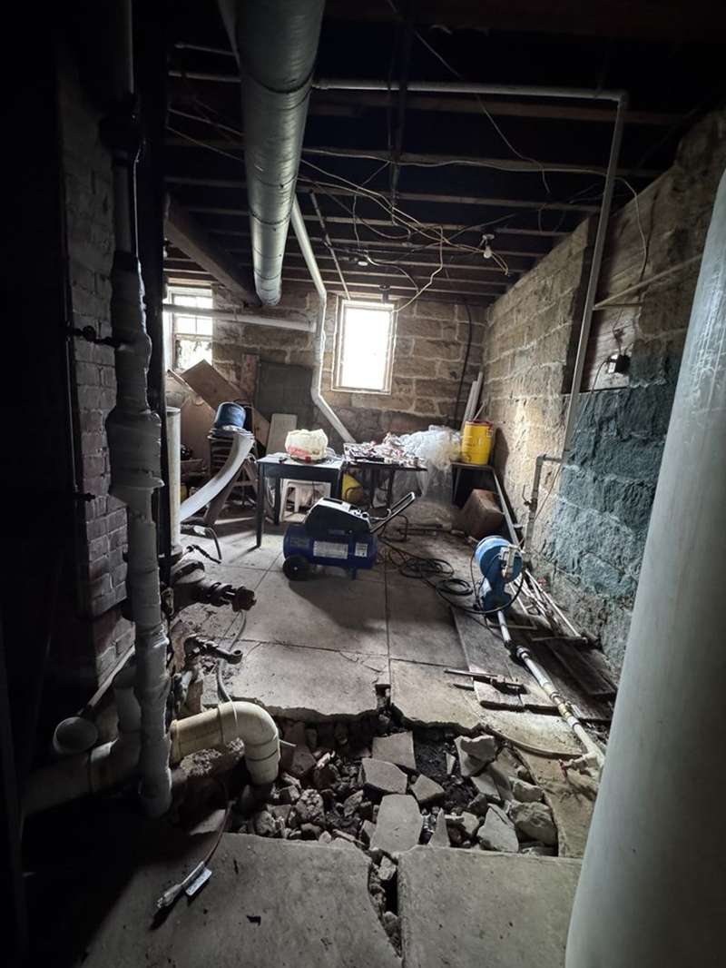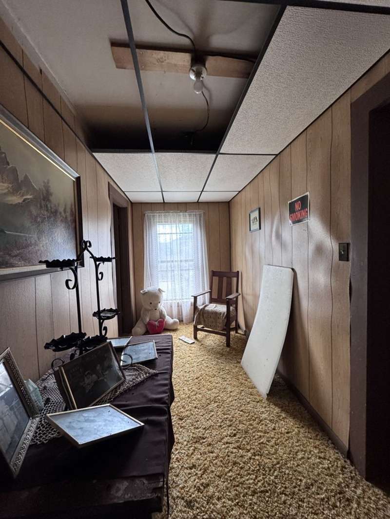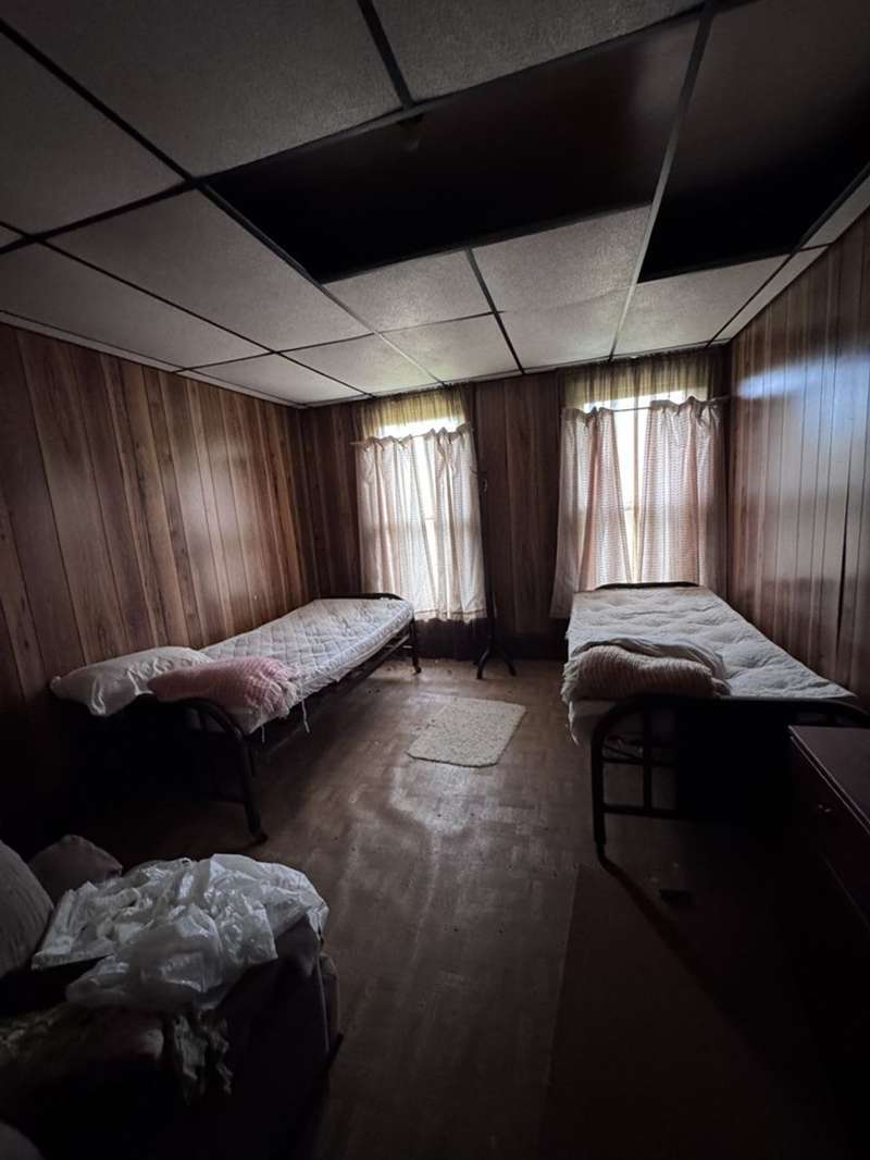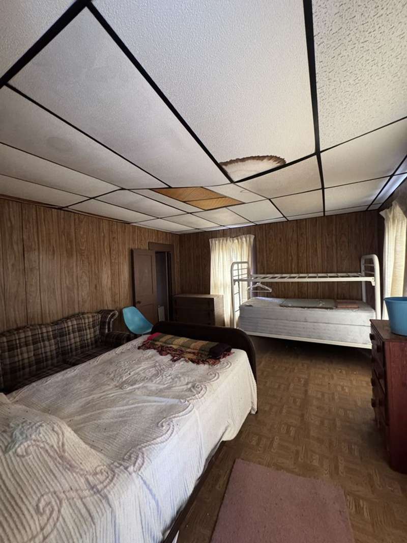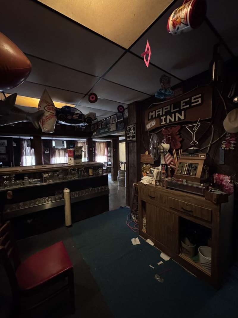 Bring this home back, so much potential for whatever buyers want to achieve. This was a bar in the past with a horseshoe bar. All contents/appliances are included in the sale. Large dance floor and three half baths on the first level. On the right side of the second level is a master suite with a full bathroom and living area, leading out onto the upper deck. The left side of the second level is four bedrooms and a full bathroom. Two original fireplaces, wood & gas. The partial basement has solid large stones. New roof in 2023. Spring water that needs a new line ran. Public sewer. Electric service is 200 amp. Circular driveway. Must be pre-approved.