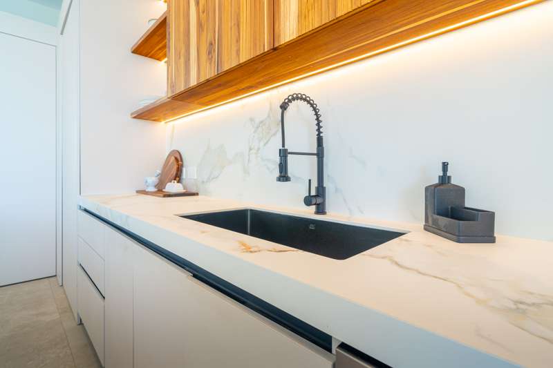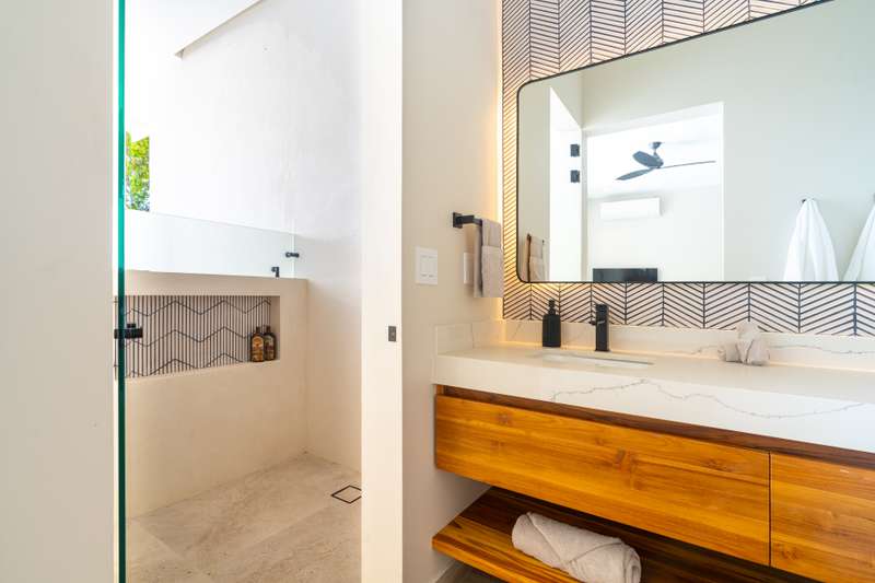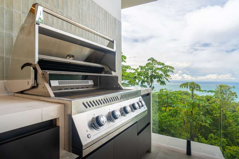 Every surface tells a story of excellence. Spanish anti-slip tile floors provide elegance and comfort underfoot. Electric custom shades move with quiet precision. At night, an LED lighting system transforms the home into a constellation of light, glowing softly against the rainforest backdrop.