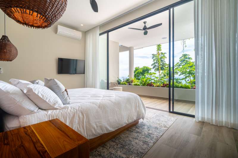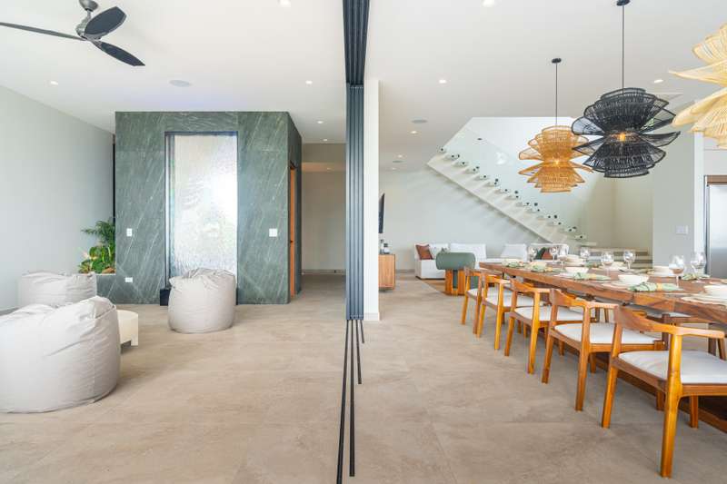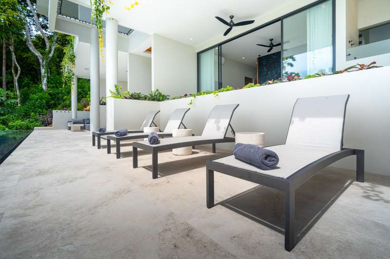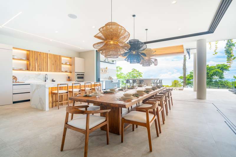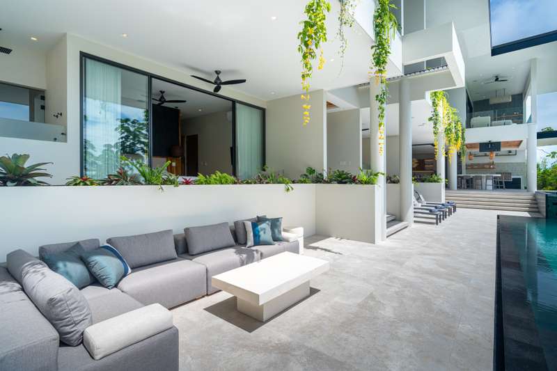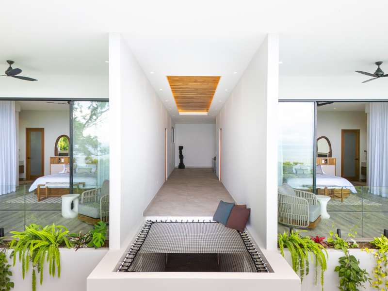No expense was spared. Every piece of furniture was custom made in Costa Rica and Bali, with materials and fabrics chosen to endure the climate of the Southern Pacific. The villa is crowned with a standing seam insulated steel roof, built strong against rain and sun alike. Lush gardens, both inside and out, bring nature into every corner of the home, including a soaring second-level atrium.