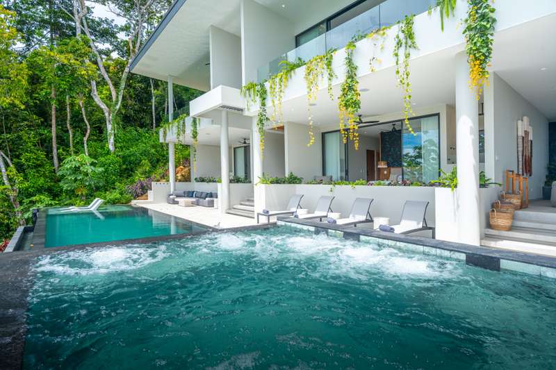 Set on 5,500 m2 (1.36 acres), with a villa of 13,000 sq ft Acqua Blu is more than a home. It is a stage for nine months of sunsets each year, a sanctuary alive with birds, monkeys, and the rhythms of the jungle. The ideal elevation of 1300 feet ensures year round breezes and sets the stage for the most magical vistas.