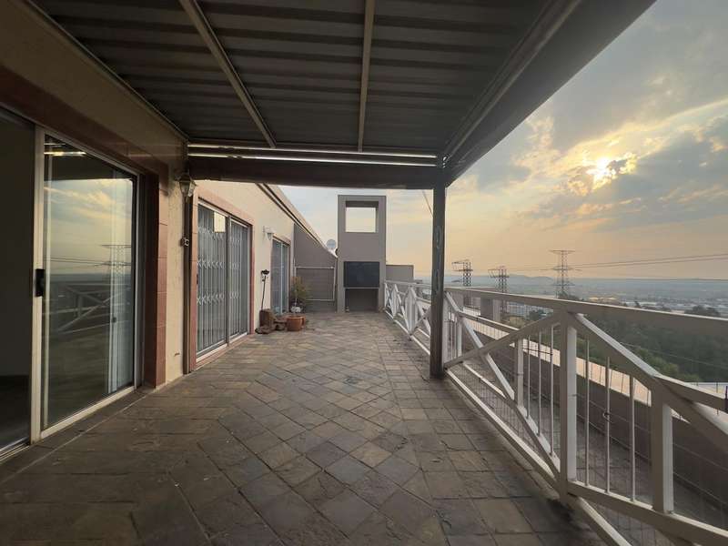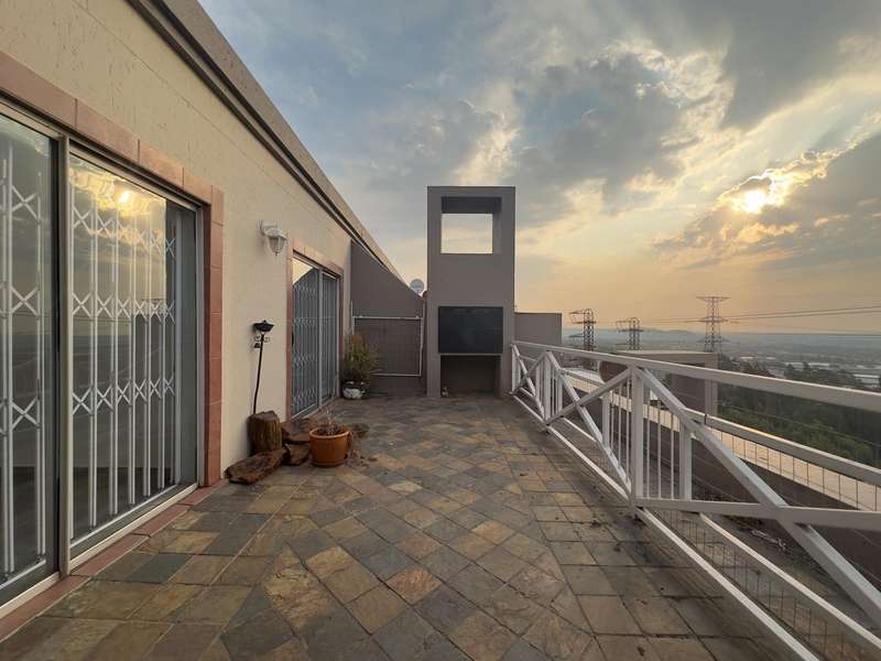 Manhattan-style North-facing Penthouse Apartment located in a Cul-de-Sac with Outdoors Entertainer?ÇÖs Area Overlooking the JHB & Sandton Skyline Nestled in a tranquil cul-de-sac at the base of a majestic mountain, discover a Manhattan-style penthouse that redefines luxury living. This isn?ÇÖt just an apartment; it's your private retreat, a sanctuary where every day feels like a holiday. Step into the heart of this home and feel the immediate warmth of its north-facing orientation. Natural light floods the open-plan living area, leading to an expansive, partially-covered balcony with a built-in braai. Here, you'll be captivated by breathtaking panoramic views of the Greater JHB skyline and the Magaliesberg mountains. Imagine hosting friends, glass in hand, as the city lights twinkle below and the scent of a braai fills the air. This is a space for making memories. The stylish, refurbished kitchen is a culinary dream with its sleek induction hob, perfect for crafting gourmet meals. The spacious main and second bedrooms, both bathed in northern sun, offer private access to the balcony, creating a seamless connection to the outdoors. Beyond the views and elegance, this penthouse provides an effortless lock-up-and-go lifestyle in a secure, pet-friendly complex. With a double carport and a powerful solar inverter system, you'll enjoy both convenience and peace of mind. This is a rare opportunity to own a piece of paradise. Schedule your private viewing today and start living the life you deserve. *Extreme care has been taken to ensure that all representations contained in this advertisement are accurate and is provided on an ?Ç£as is?Ç¥ basis with no guarantees whatsoever. The representations herein has not been compiled to meet a Purchaser?ÇÖs individual requirements and it remains the Purchaser?ÇÖs sole responsibility to inspect the property duly prior to entering into any purchase agreement. The representations herein does not constitute the terms of sale as the images and descriptions are merely indicative. Chas Everitt assumes no responsibility for any errors and we reserve the right to correct/change/update the advert at any time without prior notice.*