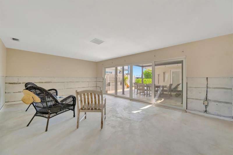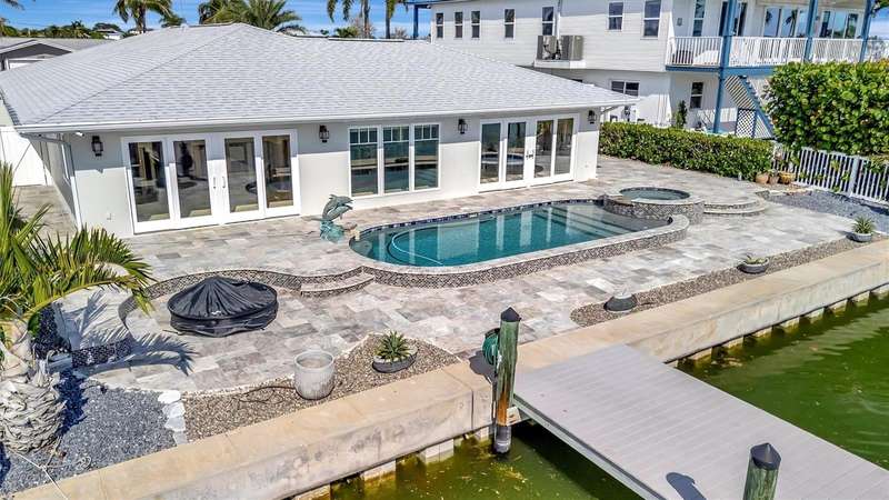 Experience the rare chance to create your own luxury waterfront retreat on one of Treasure Island’s most desirable deep sailboat water canals, offering quick access to Boca Ciega Bay and the shimmering Gulf of Mexico. Set on an expansive 70x120 lot, this 2,716 sq. ft. residence is a blank canvas for your vision, a heated pool, bubbling spa, and fire pit set against wide water views. The home’s generous layout invites effortless entertaining, with multiple gathering areas off the kitchen that flow to the pool deck and dock. The kitchen space, complete with pantry, is ready to be transformed into your dream culinary showpiece, while the formal dining room showcases tranquil water vistas. In the center of the home, a spacious lanai serves as a versatile bonus space — perfect for morning coffee, afternoon yoga, or evening cocktails in a private, breezy setting. The large family room offers a relaxed spot for movie nights or casual get-togethers. The primary suite is ready to become a serene sanctuary, with room for a spa-inspired bath, dual walk-in closets, mini split for cool sleeping on hot summer nights and an adjacent flex room ideal for an office or expanded retreat. Two additional bedrooms are generously sized, each providing comfort, natural light, and flexibility for guests or family. Additional highlights include an inside laundry room, peace of mind of storm-rated doors and windows, 2024 roof and gutters, lush landscaping, seawall (2018), dock with 16,000 lb. lift and water/electric, 2025 A/C, 2024 water heater, 2024 pool equipment, pebble tech pool and travertine flooring in the main living areas. All just minutes to Treasure Island Beach, vibrant dining, boutique shopping, downtown St. Pete, Tampa, and both airports. Bring your imagination — the possibilities are as endless as the views.