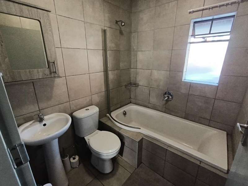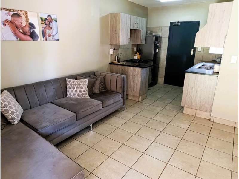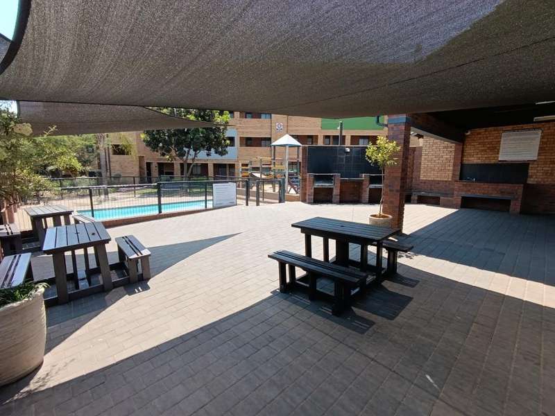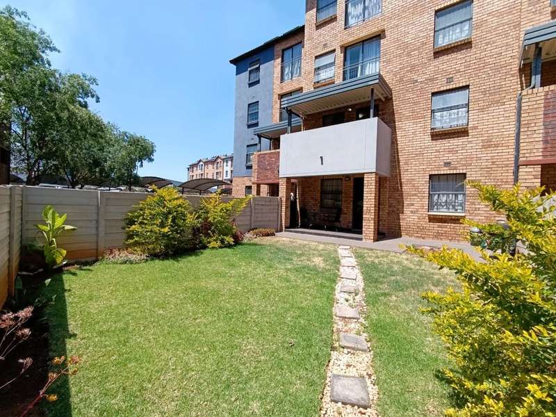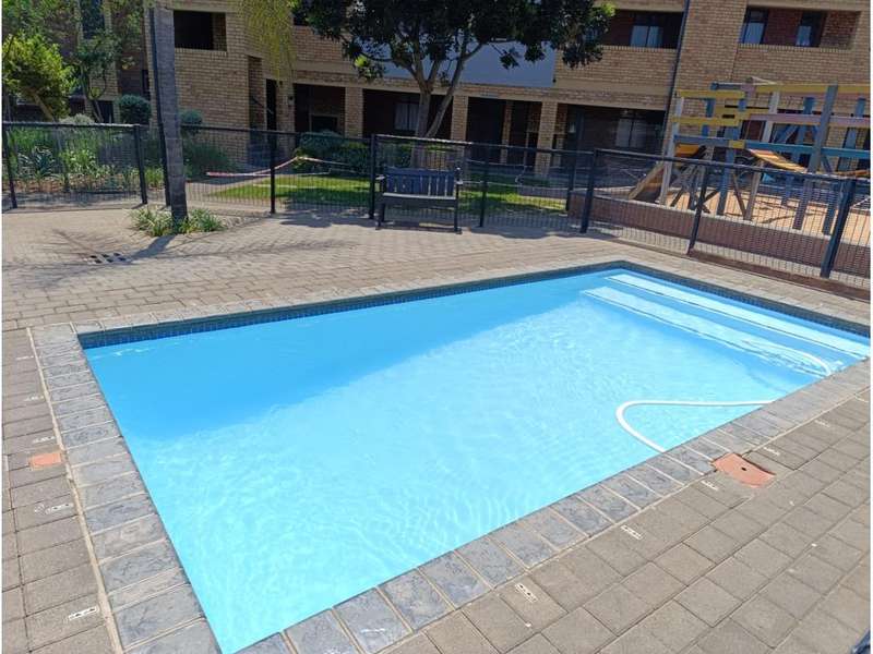 GROUND FLOOR UNIT in sought-after complex! Beautiful complex with 24-hour security. Prepaid electricity already installed for your convenience. Rental income of R7 000 pm. Modern kitchen with open plan living room, that walks out onto the patio and garden. Spacious 2-bedroom unit with built-in cupboards. Bathroom consists of a bathtub with showerhead, basin and toilet. Communal braai area with a pool as well as a sand pit and jungle gym for the kids. Trampoline for kids to play too. Kiosk and laundromat in the complex for your convenience. Contact Dezir?? today to secure your viewing.